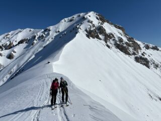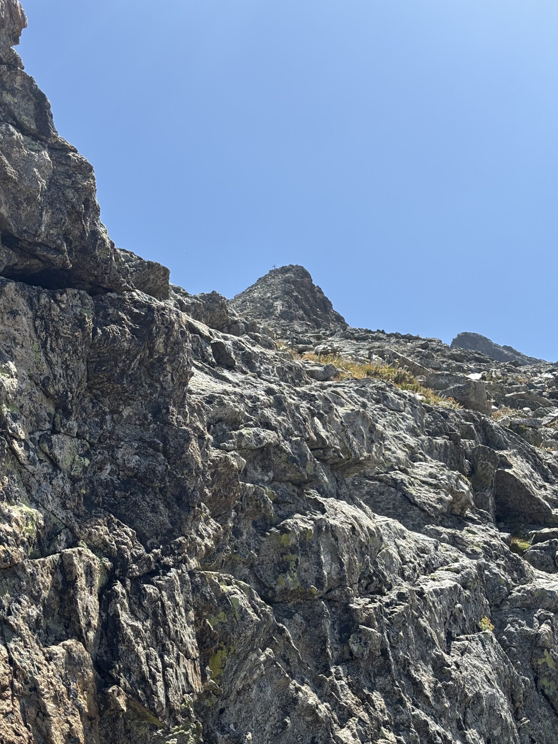 Partiti dal bivio per il Ciarbonet, bella passeggiata fino a pochi metri dalla cima, poi concordo con grandeunorosso, non è alpinistica ma nemmeno escursionistica perché…