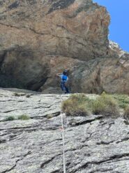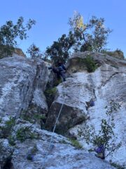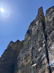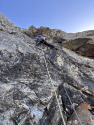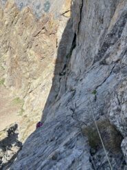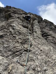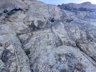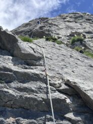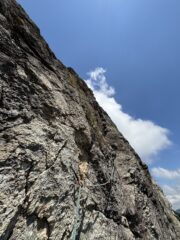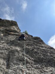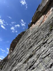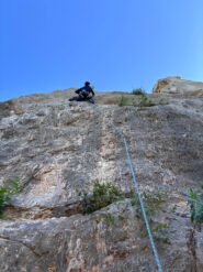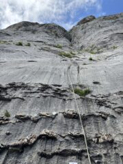 Saliti prima due monotiri, Nebbia 5c+ (ocio è un gran bastone, almeno 6a+), Laika 6a+ e poi fatta per intero Merluzzo e Piagnina, unendo L2+L3…