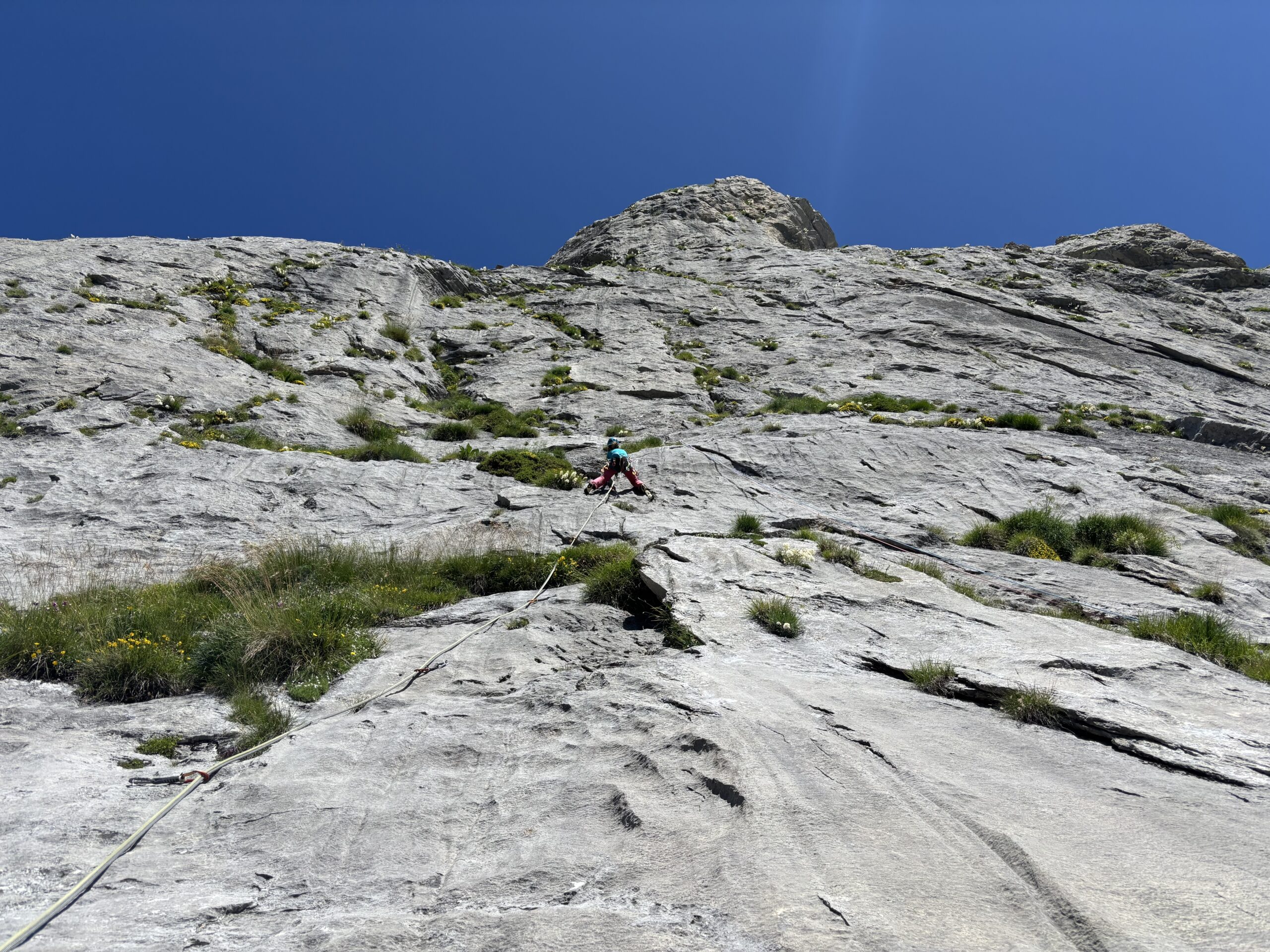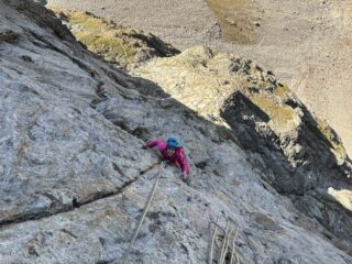 Rilassante via plaisir, ottima alternativa alla normale per arrivare in vetta. Chiodatura essenziale ma dove serve lo spit c'è (forse su L1 il primo è un…