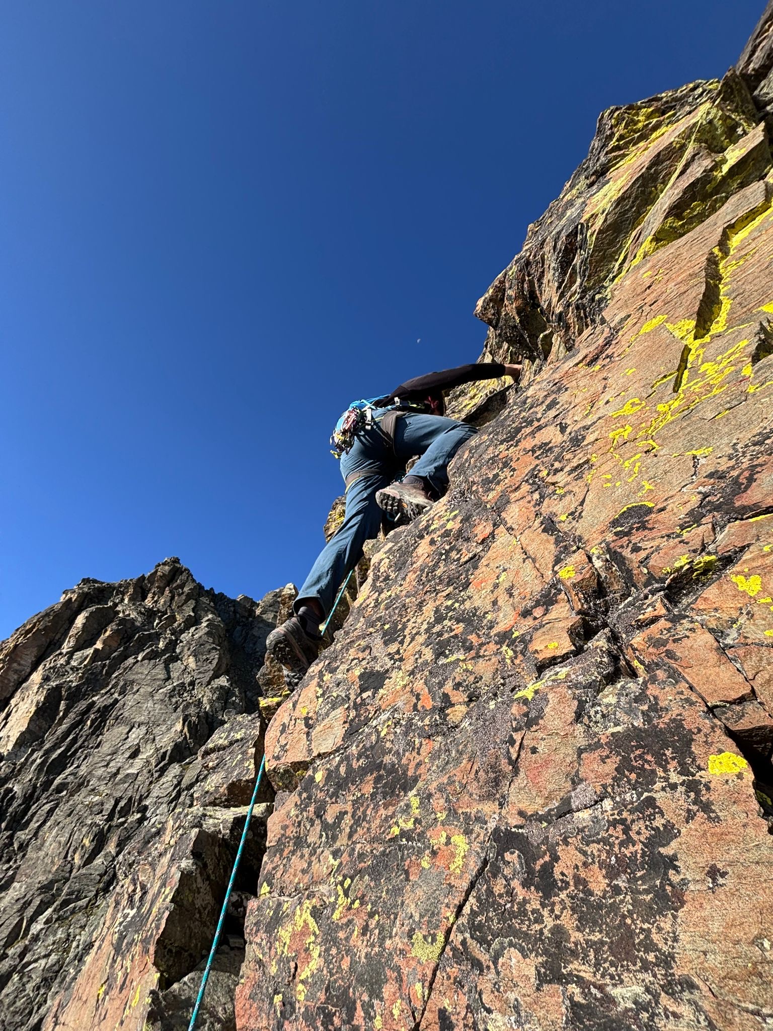 Bella e lunga cavalcata in cresta su roccia solida ma parecchio lichenata. In loco presenti solo le soste che sono perfette, anche quelle a chiodi,…
