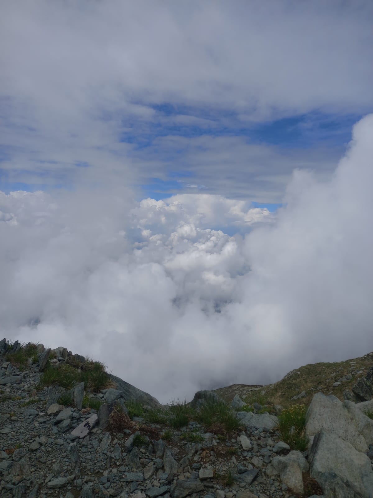 Partiti dalla diga, saliti per un pezzo sulla strada e poi preso un sentiero successivamente perso, abbiamo tagliato per prati fino a raggiungere la cima…