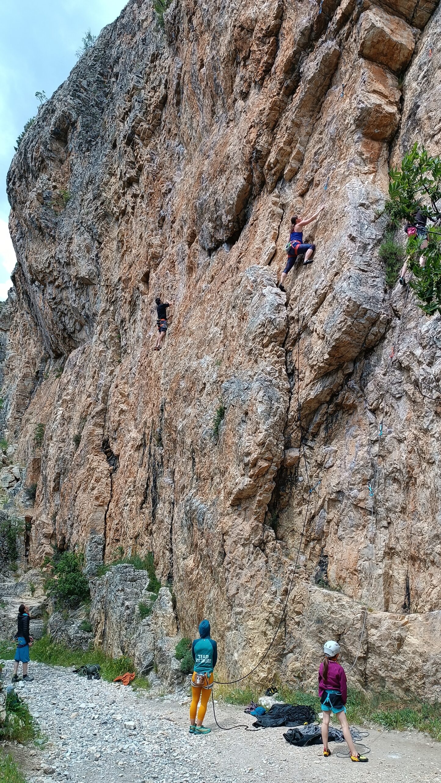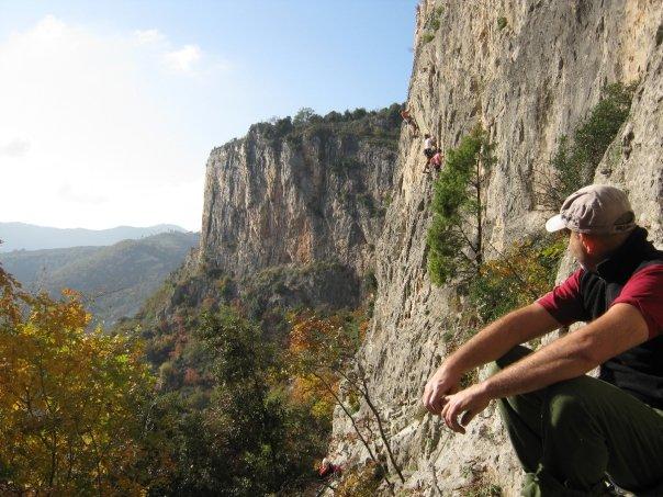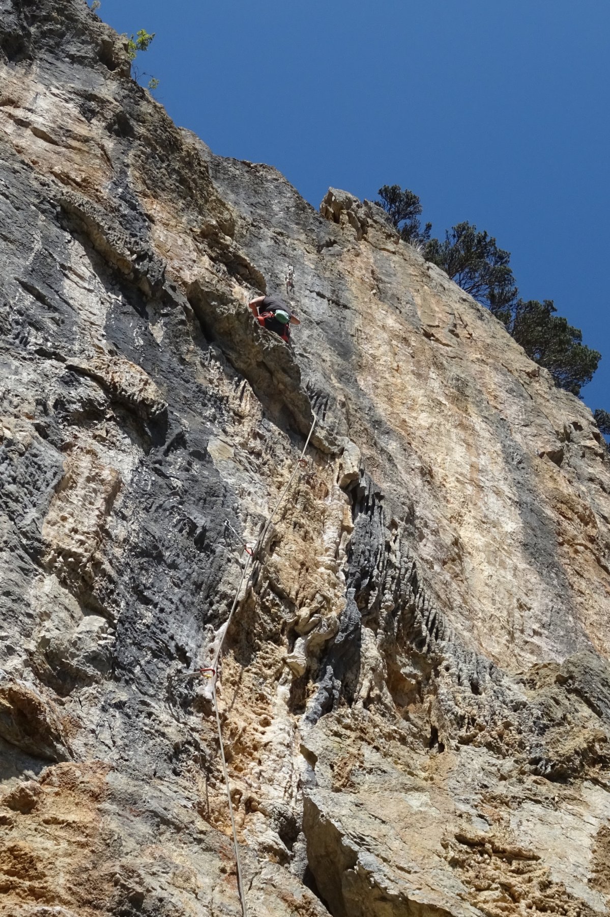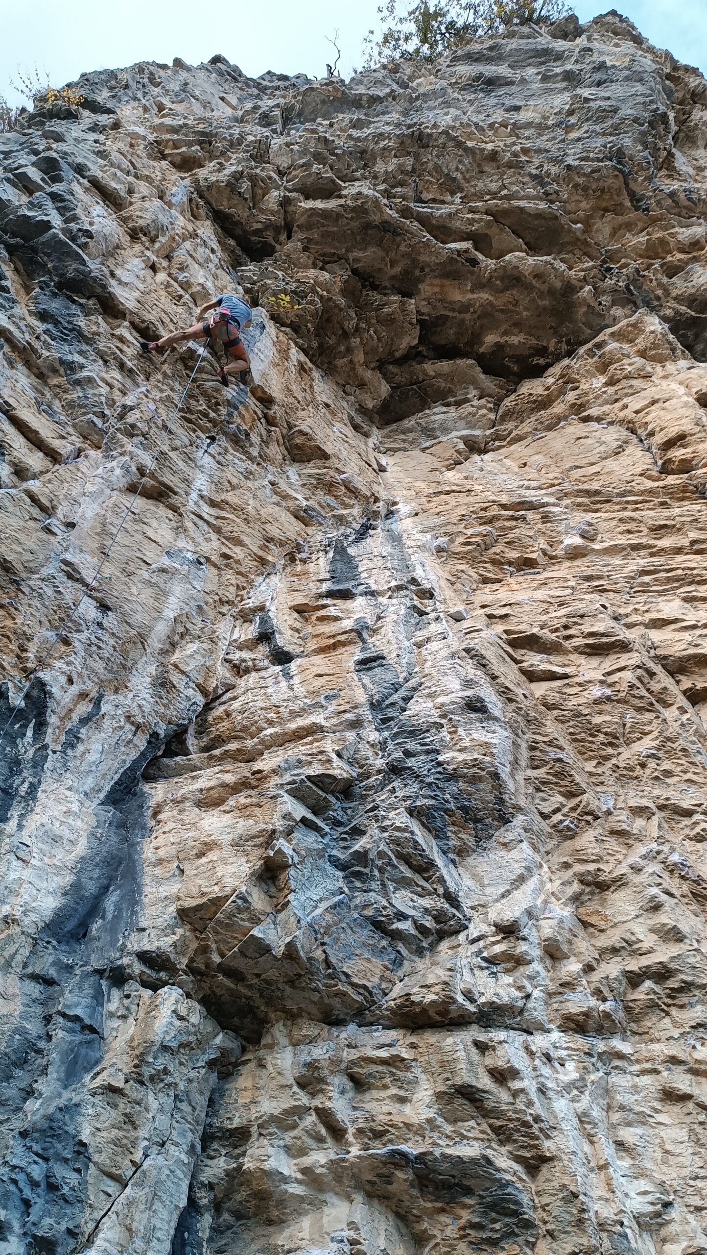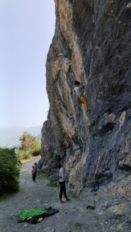 Ottime condizioni della falesia. Frequentazione piuttosto scarsa (noi 4 più un gruppo di 3 nel pomeriggio). Scalato alcuni tiri tra il 6a e il 6b+ e poi…