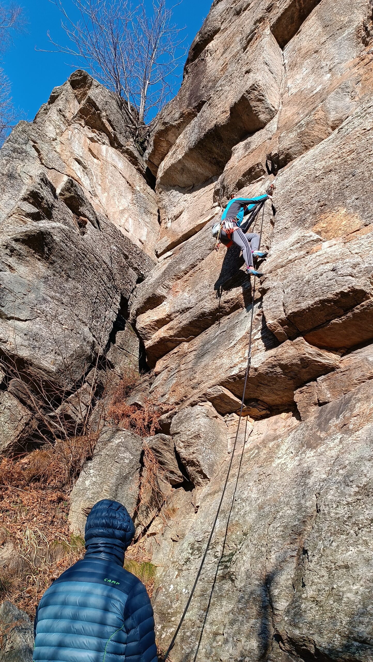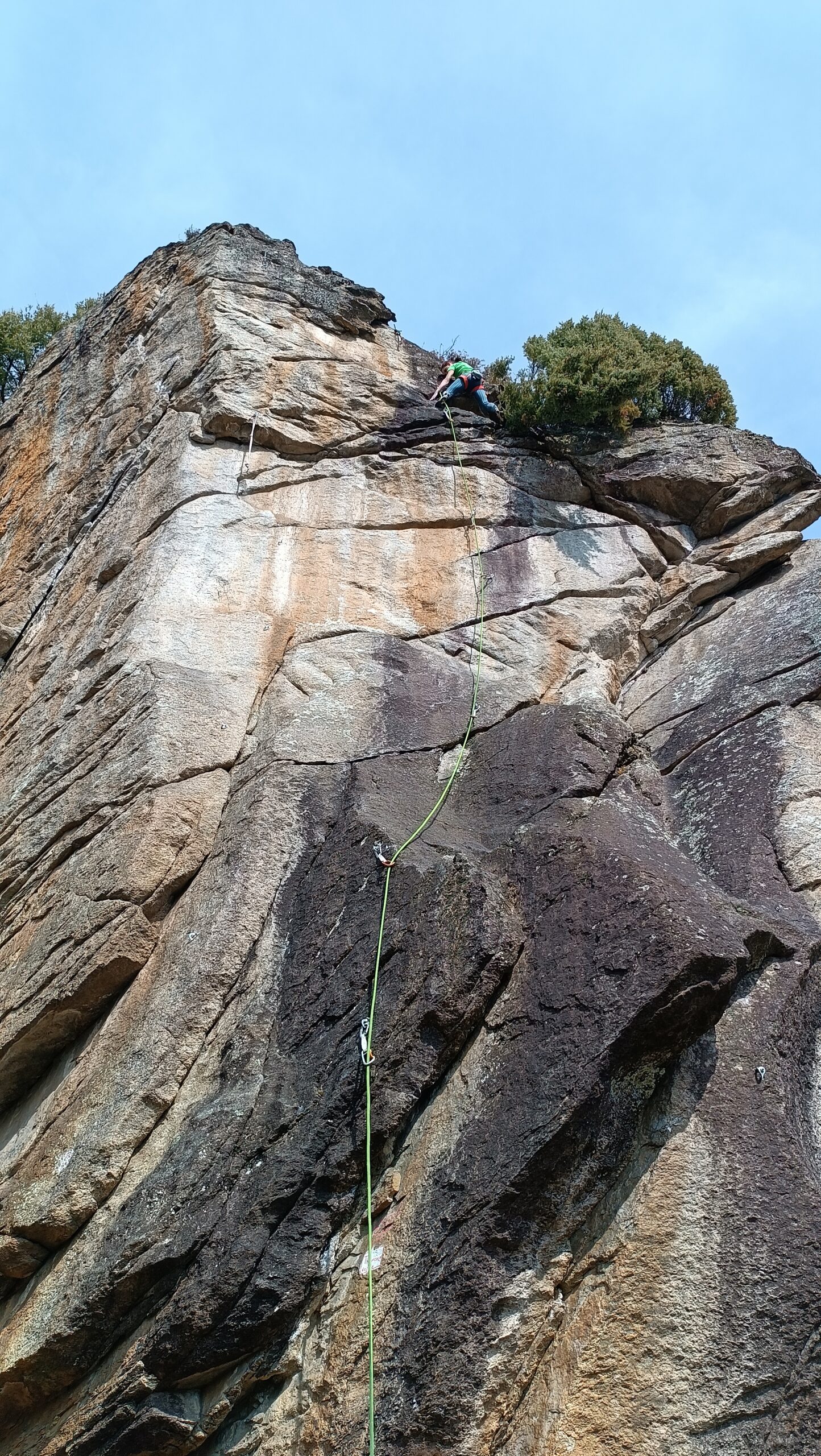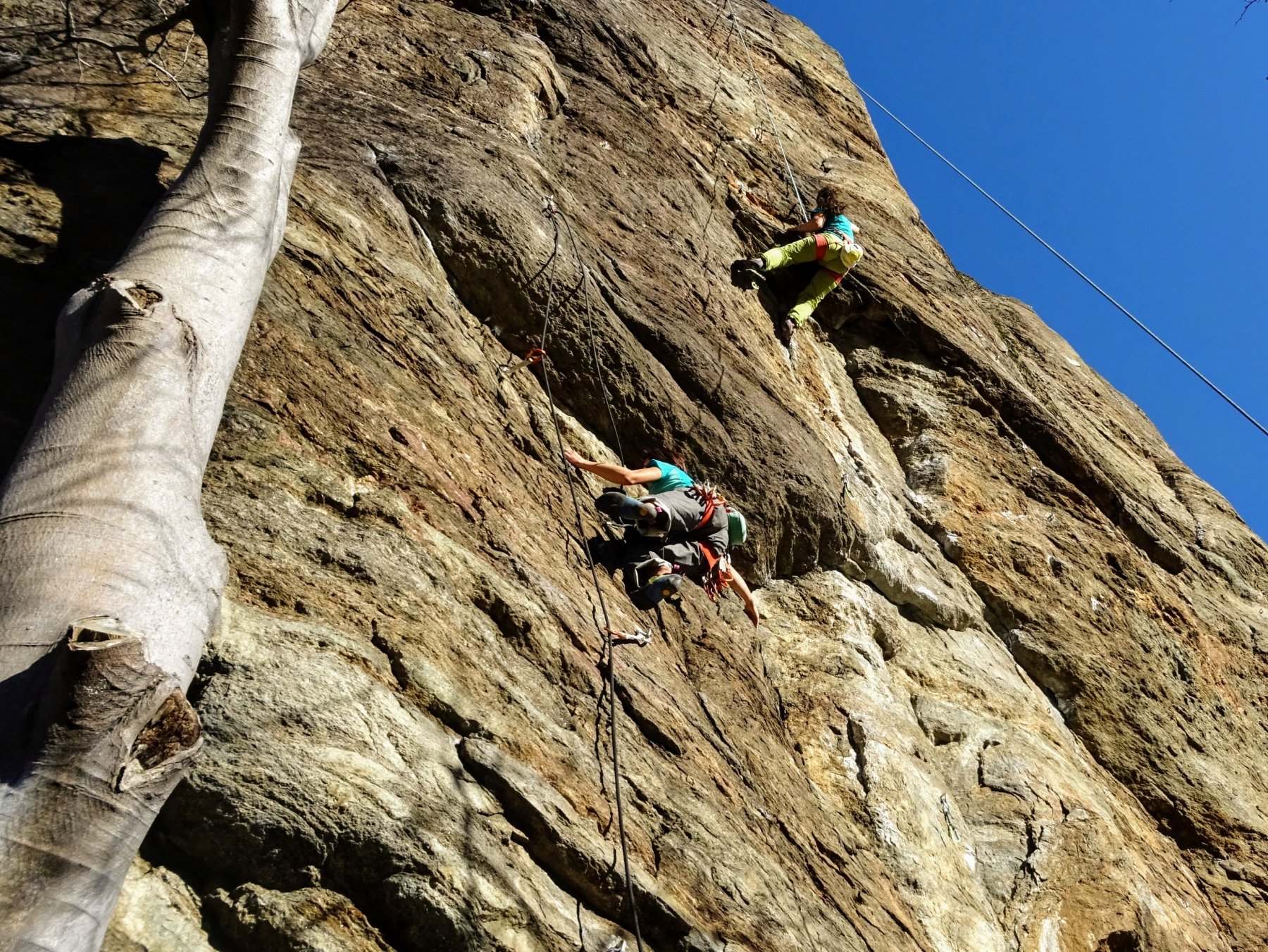 Ottime condizioni della falesia. Frequentazione piuttosto scarsa (noi 4 più un gruppo di 3 nel pomeriggio). Scalato alcuni tiri tra il 6a e il 6b+ e poi…