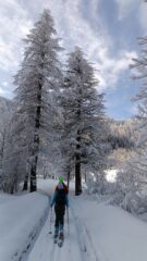 Partenza ore 9.00 dal park del rifugio. Visto l'orientamento del percorso (expo ovest) la temperatura è stata buona.