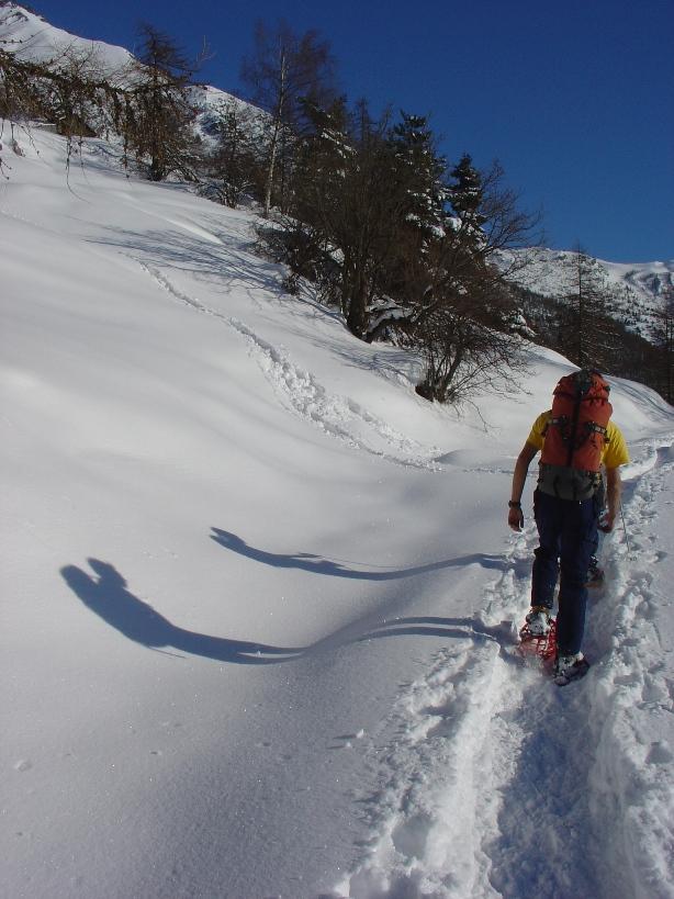 | thebrd | attraversamento della pista da fondo | thebrd | tornante durante la salita | thebrd | sorpresa, il cielo azzurro! | thebrd | il gruppo al completo al nuovo rifugio troncea!