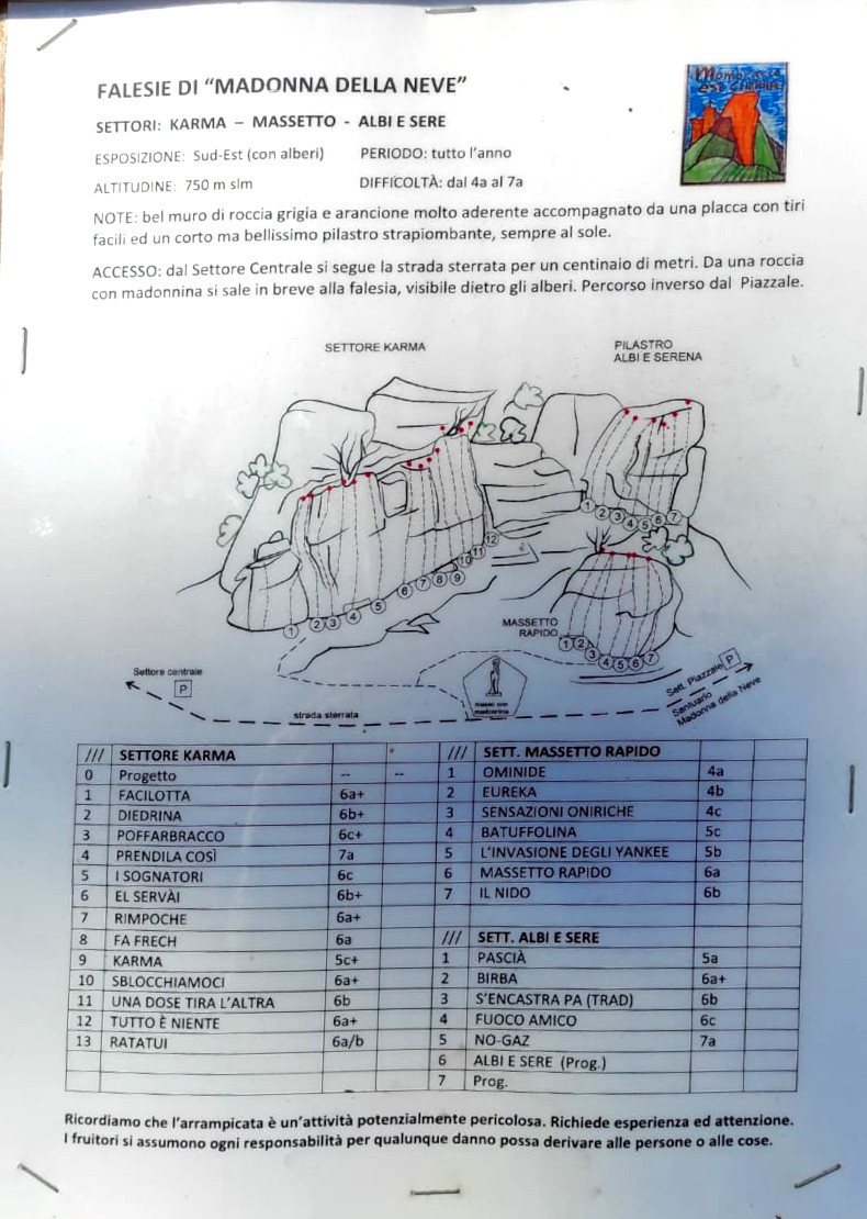 Scalato nel settore Karma (di cui allego foto esplicativa); in questo periodo dalle 15 va in ombra (circa una mezz'ora prima del settore su strada). Roccia…