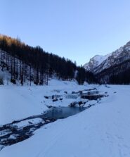 Dopo aver tentato di salire a Pian Marmarin (fatto 2 km di sterrato con vari tratti innevati) abbiamo ripiegato qui... Temperatura estiva, quasi caldo, ma accettabile…