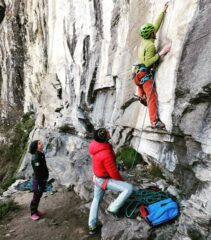 Parcheggio pieno a parecchia gente in falesia. Per fortuna di tiri ce ne sono per tutti! Temperatura ottima nella parte centrale della giornata, freddo al mattino…