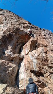 Prima volta in questa falesietta “da locals”. Temperature basse nonostante il sole. Il primo impatto non è stato dei migliori, poi piano piano l’impressione è migliorata…