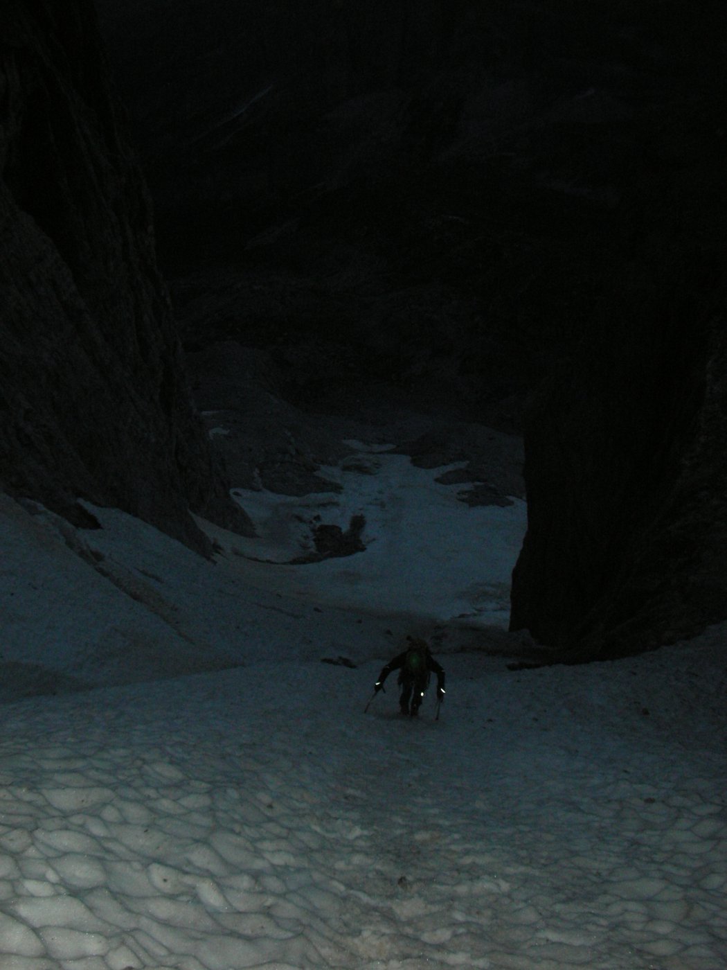 Canalone neri 4/5 luglio Dalla relazione si capisce che non è un canalone banale, 1200m di sviluppo su gradi che vanno dai 40 ai 60. Partenza…