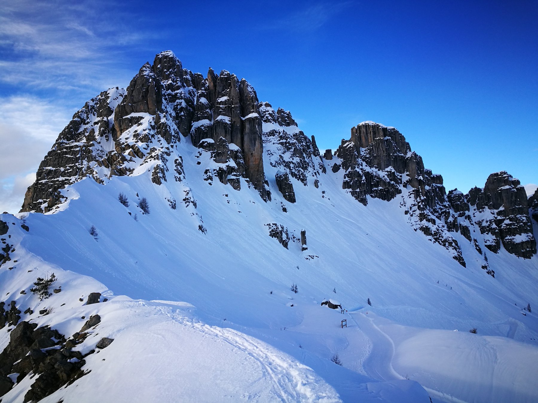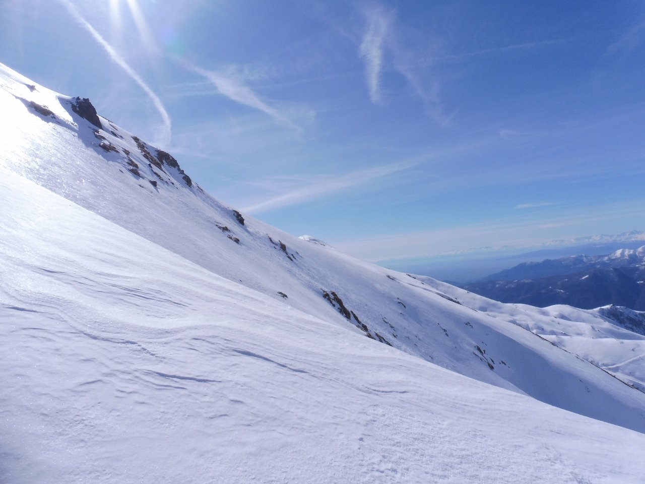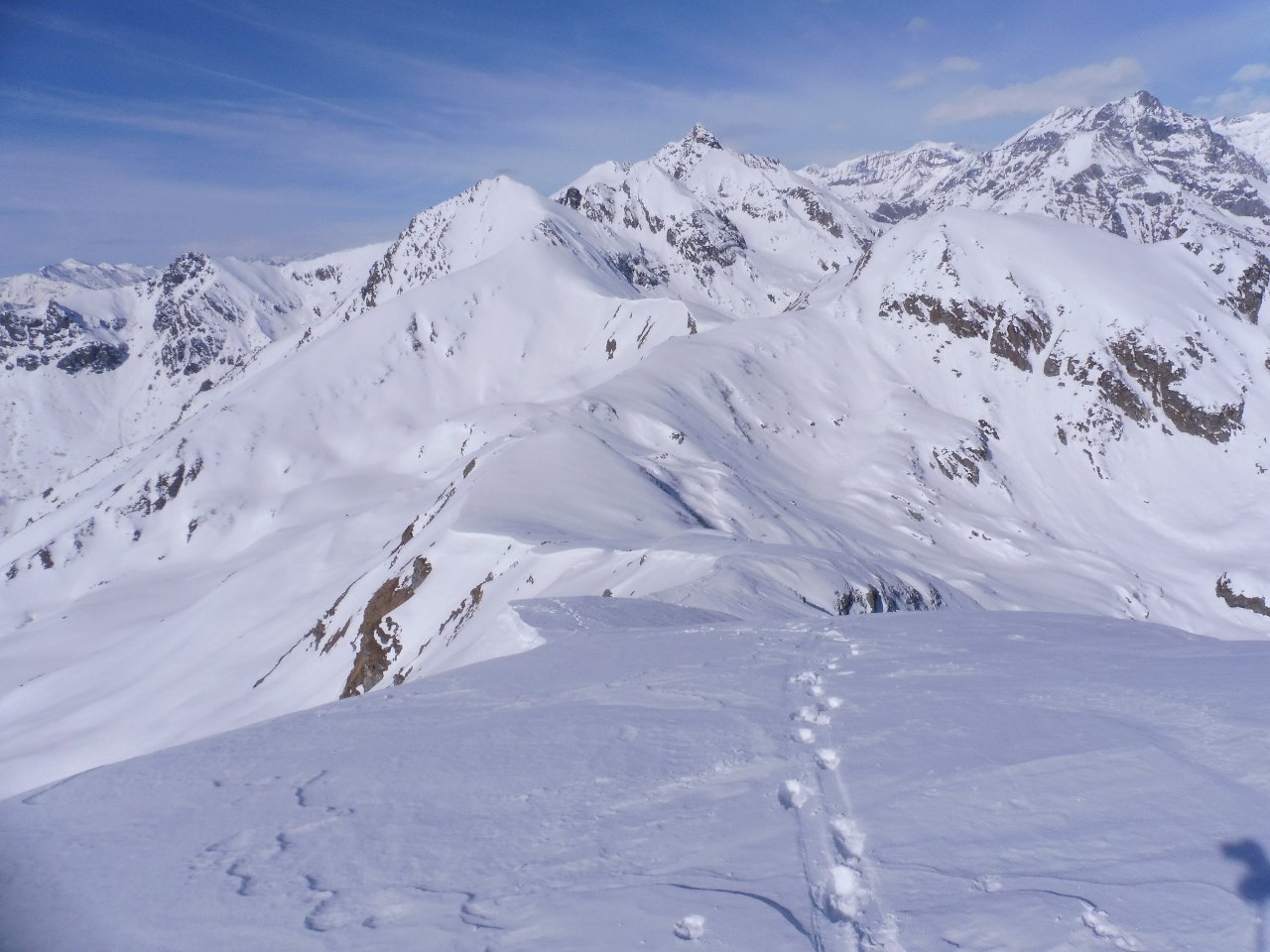 | tini | traverso dal Passo Veillet Sud verso la spalla che adduce su Lemie | tini | Il Vallone del Ciarm del Prete Vergine, lo stiamo tracciando | tini | un monumento dello scialpinismo nostrano | tini | la nostra traccia alla Rocca dell'Alpe | tini | Iniziamo la nostra discesa, bello il Ciarm del Prete immaccolato come poche volte si può trovare