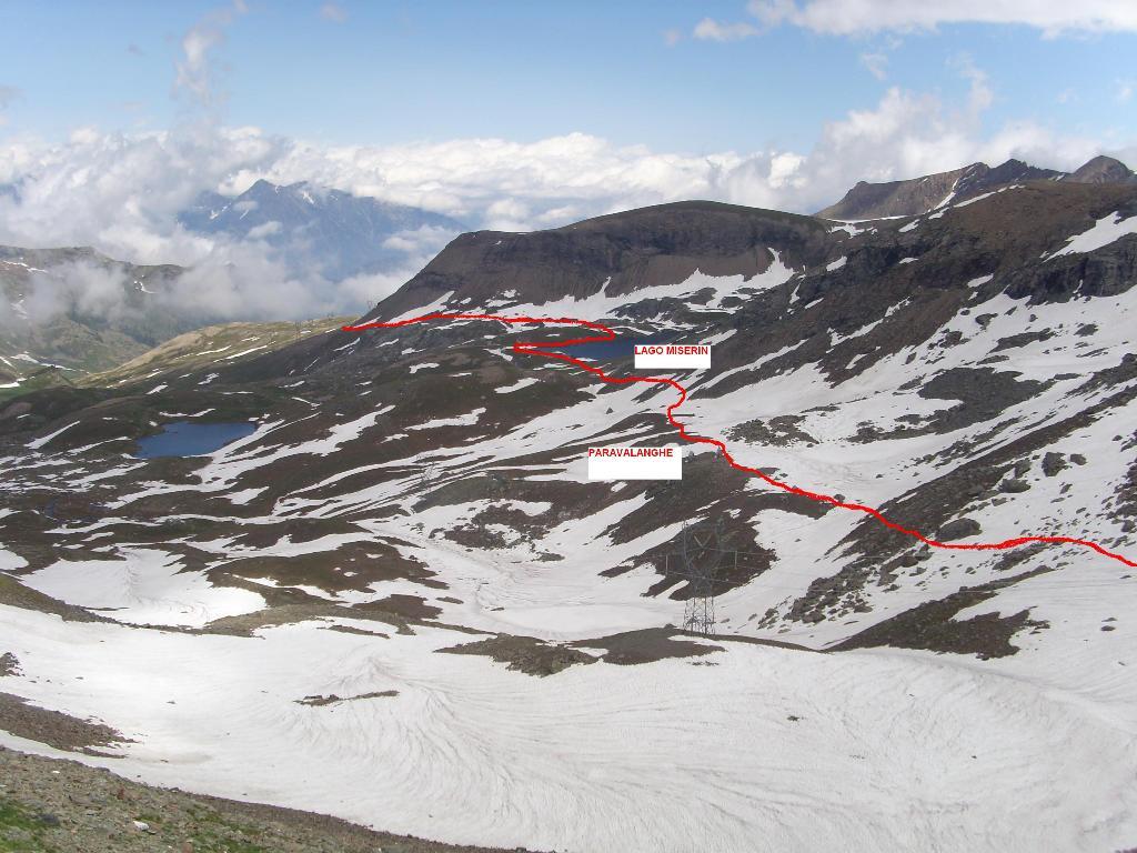 | tini | Lago Miserin | tini | Dal lago verso la finestra | tini | Finestra di Champorcher | tini | Grivola | tini | Gran Paradiso | tini | Itinerario - parte alta | tini | Itinerario | tini | itinerario parte finale
