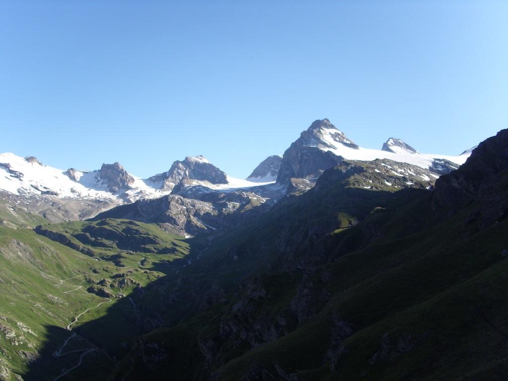 | tini | 03 - Dalla Cima - Sembra di toccare la Grivola, sullo sfondo Monte Bianco e Grandes Jorasses | tini | 04 - Ghiacciaio del Trajo, parte alta tra punta nera-bianca e Grivola | tini | 05 - Gran Paradiso visto dalla vetta | tini | 06 - La cresta est, parte finale della salita | tini | 07 - La cresta est, la traccia su ghiaioni passa poco a dx della cresta, in alcuni punti a 10 mt. dal ghiacciaio | tini | 08 - OLtre il colle della Rossa, due possibili traccie per risalire i ghiaioni, quella in verde scende un pò ma è più semplice | tini | 09 - Le 2 tracce presenti sui ghiaioni viste dal colle della Rossa | tini | 10 - Stambecco sul sentiero... chissà se si sposterà... | tini | il passaggio sul ghiacciaio visto dalla vetta. La prospettiva schiaccia le pendenze. Il tracciato percorso è il più semplice e meno ripido. | tini | Bivacco Blais nelle nuvole | tini | Lac d'Ambin visto dalla Croce Blais | tini | 03 - La vetta... e le nuvole che non lasciano vedere niente | tini | Punta Sommeiller dai Fourneaux | tini | Vista dall'alto sull'itinerario | tini | 01 - il pianoro dove si trova il bivacco orsiera, visto dal sentiero in direzione alpe Toglie