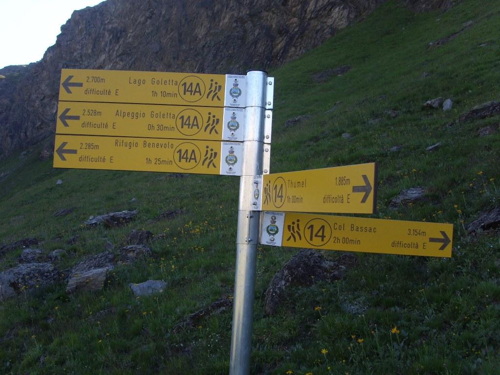 | tini | Itinerario | tini | Comba di Goletta | tini | Granta Parei e lago Goletta | tini | Inizio del sentiero 14 in quota | tini | Dal sent.14 la val di Rhemes | tini | Bivacco della guardia forestale | tini | Segnavia al bivacco della forestale | tini | Panorama dal bivacco | tini | Discesa dal sent.14 verso Alp.de Fos e Thumel
