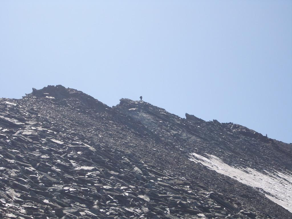| tini | 01 - La p.ta Rossa della Grivola (A destra) vista da poco oltre il rif.Vittorio Sella | tini | 02 - Colle della Rossa e rif.Vittorio Sella visti dalla punta Rossa | tini | 03 - Dalla Cima - Sembra di toccare la Grivola, sullo sfondo Monte Bianco e Grandes Jorasses | tini | 04 - Ghiacciaio del Trajo, parte alta tra punta nera-bianca e Grivola | tini | 05 - Gran Paradiso visto dalla vetta | tini | 06 - La cresta est, parte finale della salita | tini | 07 - La cresta est, la traccia su ghiaioni passa poco a dx della cresta, in alcuni punti a 10 mt. dal ghiacciaio | tini | 08 - OLtre il colle della Rossa, due possibili traccie per risalire i ghiaioni, quella in verde scende un pò ma è più semplice | tini | 09 - Le 2 tracce presenti sui ghiaioni viste dal colle della Rossa | tini | 10 - Stambecco sul sentiero... chissà se si sposterà...