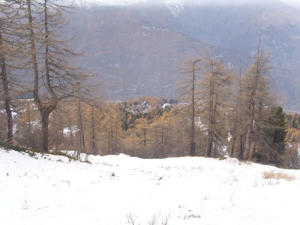 | tini | 01 - Salendo lungo la pista Scoiattolo | tini | 02 - Appena fuori dalle piste c'è ancora il bosco autunnale, privo di neve | tini | 03 - Dal Truc delle Vaccare uno sguardo verso il Frais | tini | 04 - Anche in alto, neve insufficiente per sciare senza raschiare la terra | tini | 05 - L'arrivo dello skilift in stato di abbandono