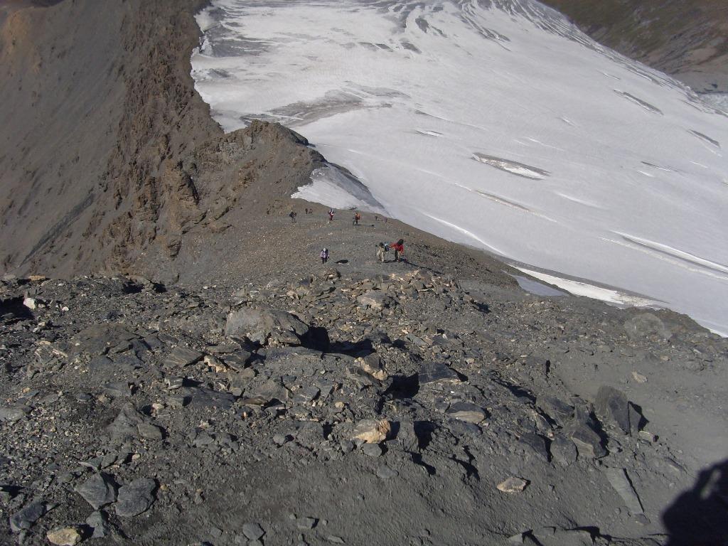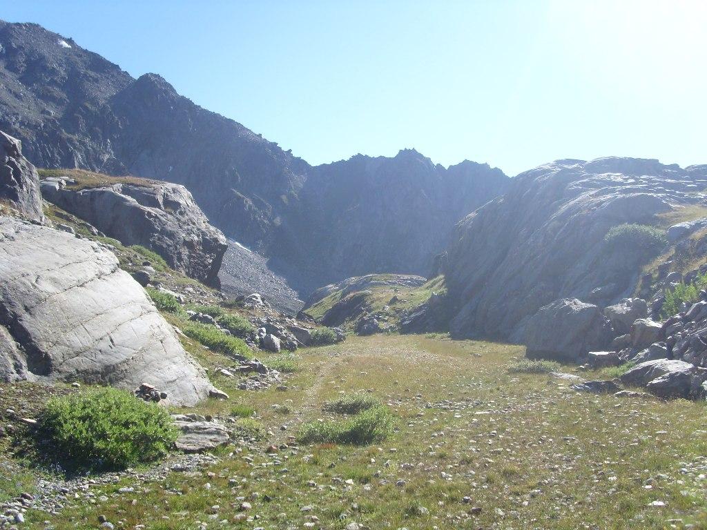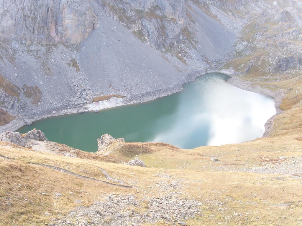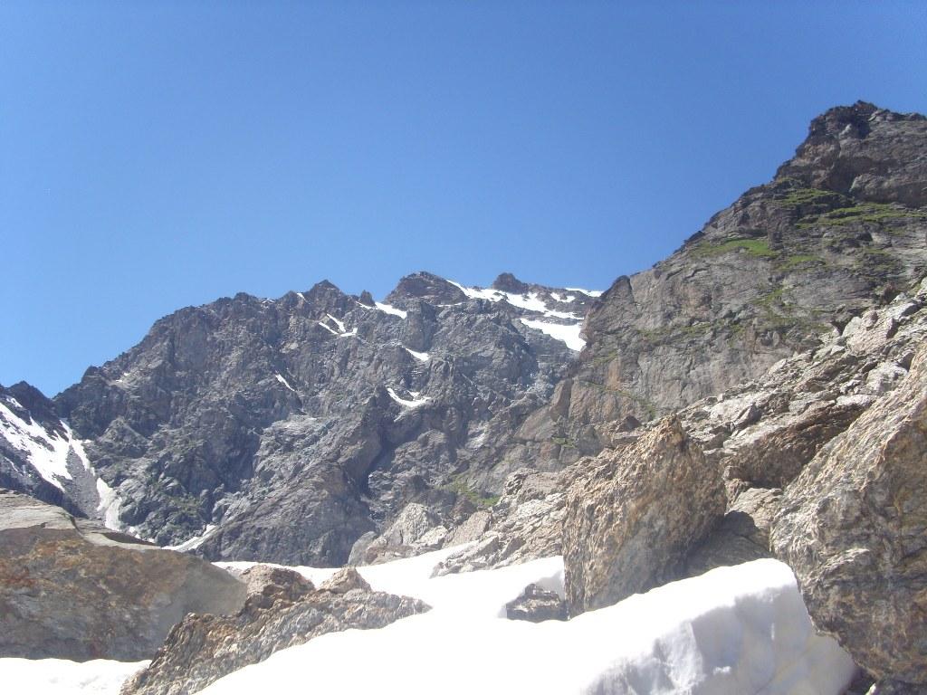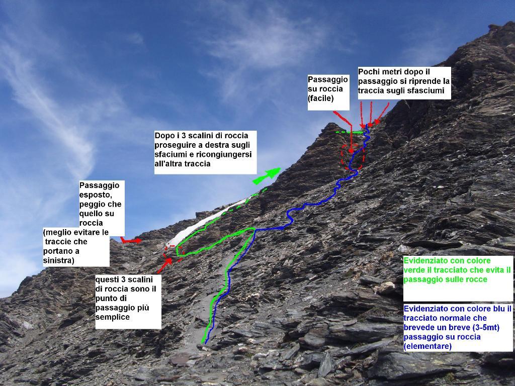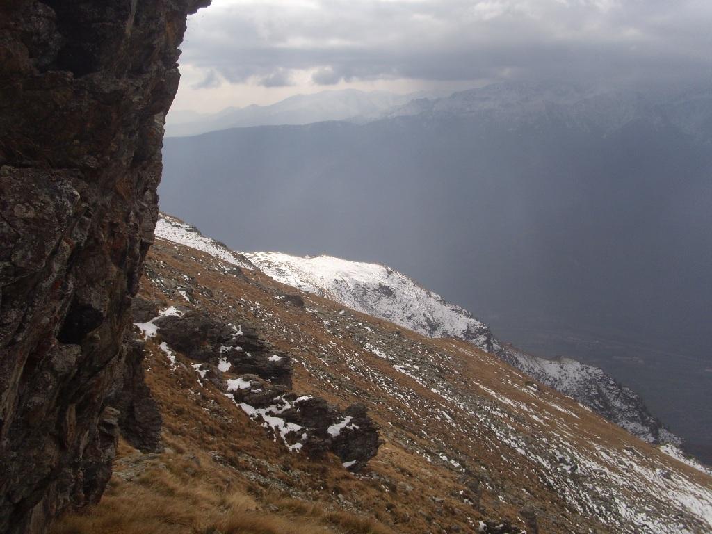 | tini | 03 - foto che da l'idea del senso di chiusura odierno (Nuvole basse ed oscurità) | tini | 04 - cielo plumbeo | tini | 05 - versanti a N della partete della Rocca Patanua | tini | 06 - il sentiero è tutto esposto a S, senza neve | tini | 07 - il sentiero si insinua tra i nevai (Che non si calpestano.. ancora) | tini | 06 - Vallone da percorrere con balza di roccie finale prima del lago. Il punto di passaggio è il più basso al centro. | tini | 07 - prima di arrivare al lago, sulla sx le belle pareti della Roche Colombe | tini | 08 - inizio del tratto attrezzato con corde fisse. Più semplice se percorso in salita. | tini | 09 - il camino (seconda parte del tratto con corde fisse) visto dall'alto. Le corde possono aiutare in caso di roccia bagnata. | tini | 10 - lo spigolo ovest delle Aretes de la Bruyere che appaiono imponenti dal Grand Lac | tini | 11 - Le Grand Lac | tini | 12 - Questa arvicola ha rallegrato il nostro pranzo in riva al lago cibandosi delle croste del formaggio | tini | 13 - la cresta ovest della Arete de la Bruyere | tini | 14 - affilata... Arete de la Bruyere da ovest | tini | 15 - Pic de la Mouliniere