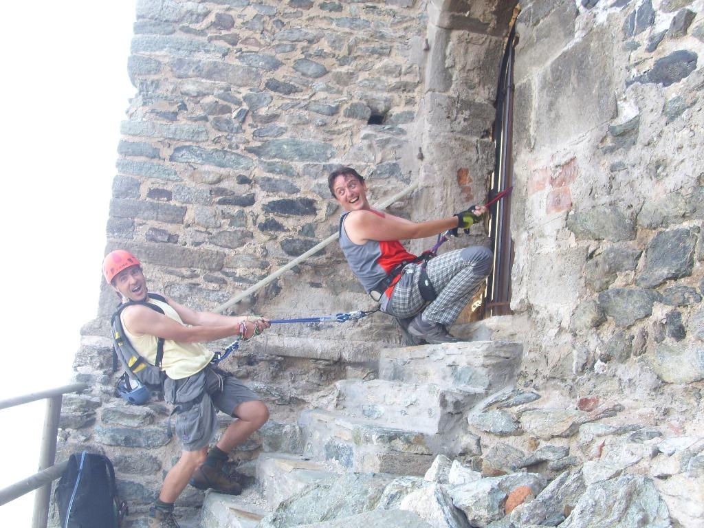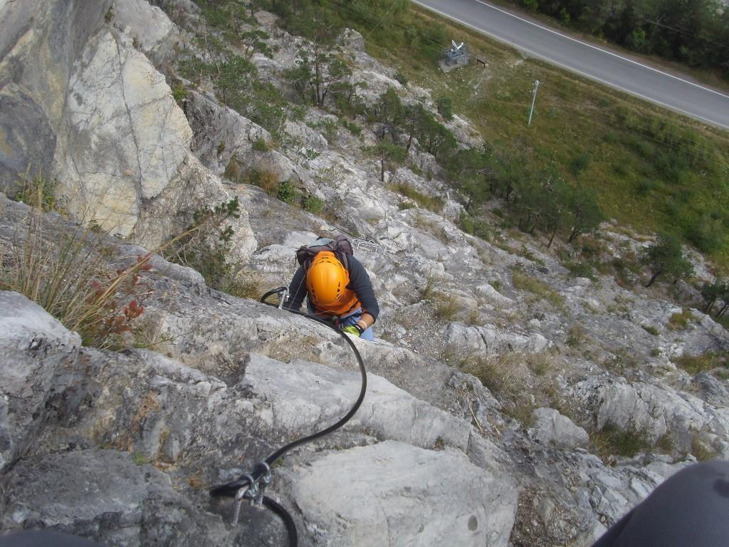 | tini | 01 - l'inizio della ferrata | tini | 02 - Marco sulle prime rampe | tini | 03 - arrivando alla piccola passerella | tini | 04 - altri scalini oltre la passerella | tini | 05 - la passerella dall'alto, e Briancon in verticale | tini | 06 - vista su Briancon....con uno scalino | tini | 07 - pilone in cima | tini | 08 - percorso della ferrata visto dal forte de la Salette