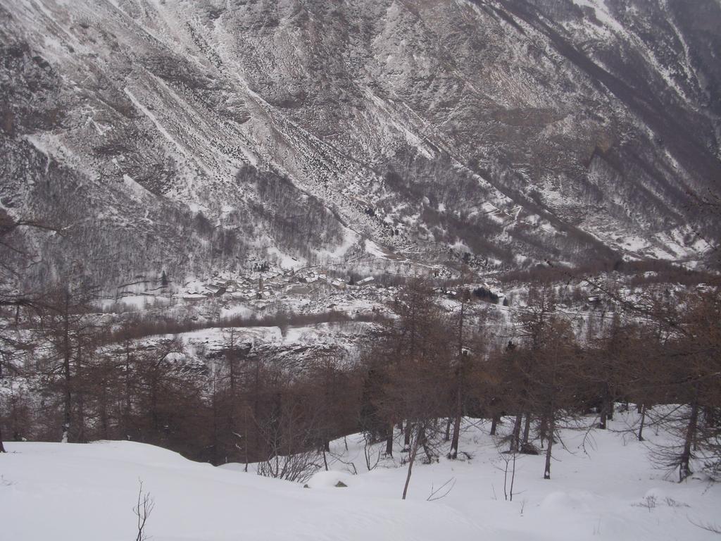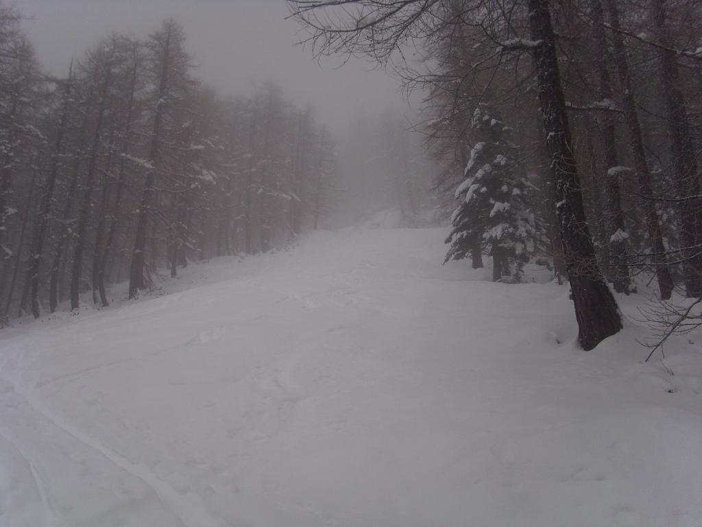 | tini | 01 - stato innevamento alle casermette - 80 cm circa | tini | 02 - sotto la nevicata, ma dentro le casermette aabbandonate | tini | 03 - in alto, scri dritti a vale o quasi... ma si scende | tini | 04 - quasi arrivati a Bousson, crosta sfondosa ricopera da 20cm di neve marcia... pessima da sciare.