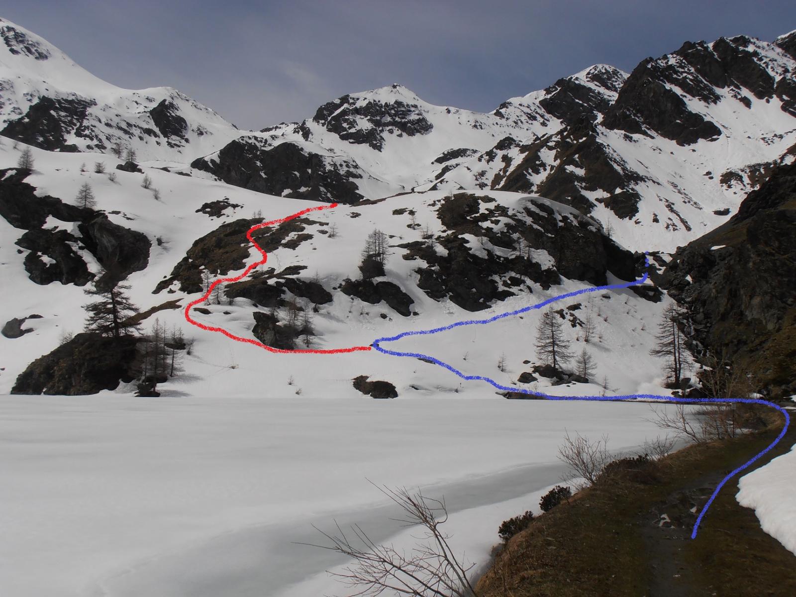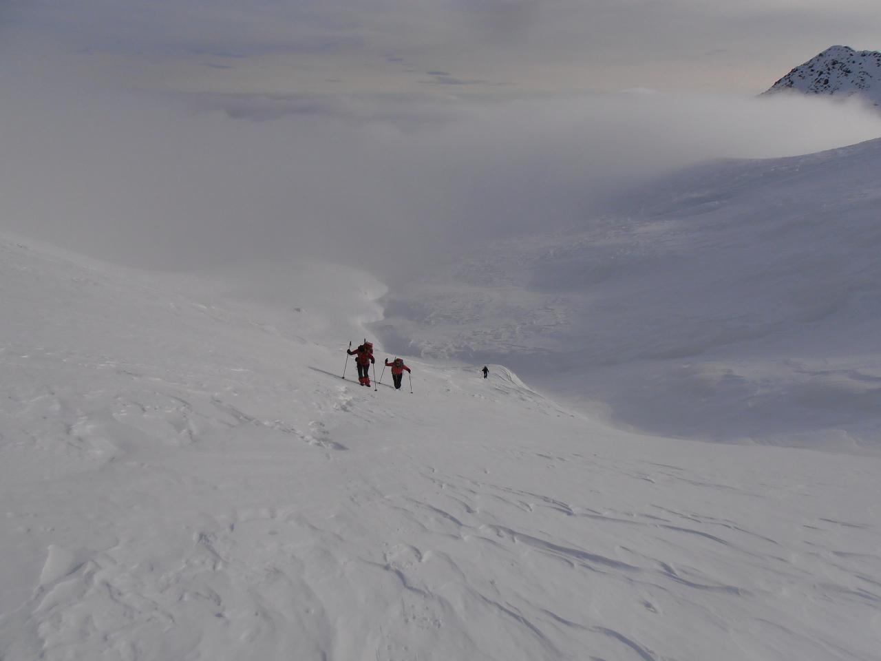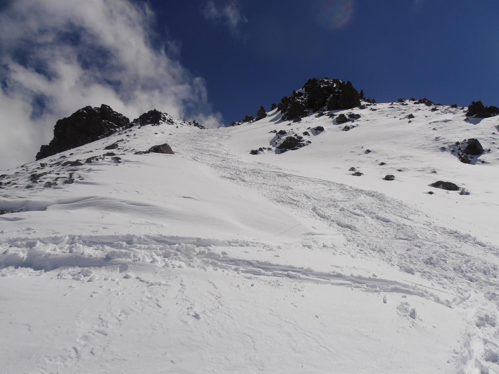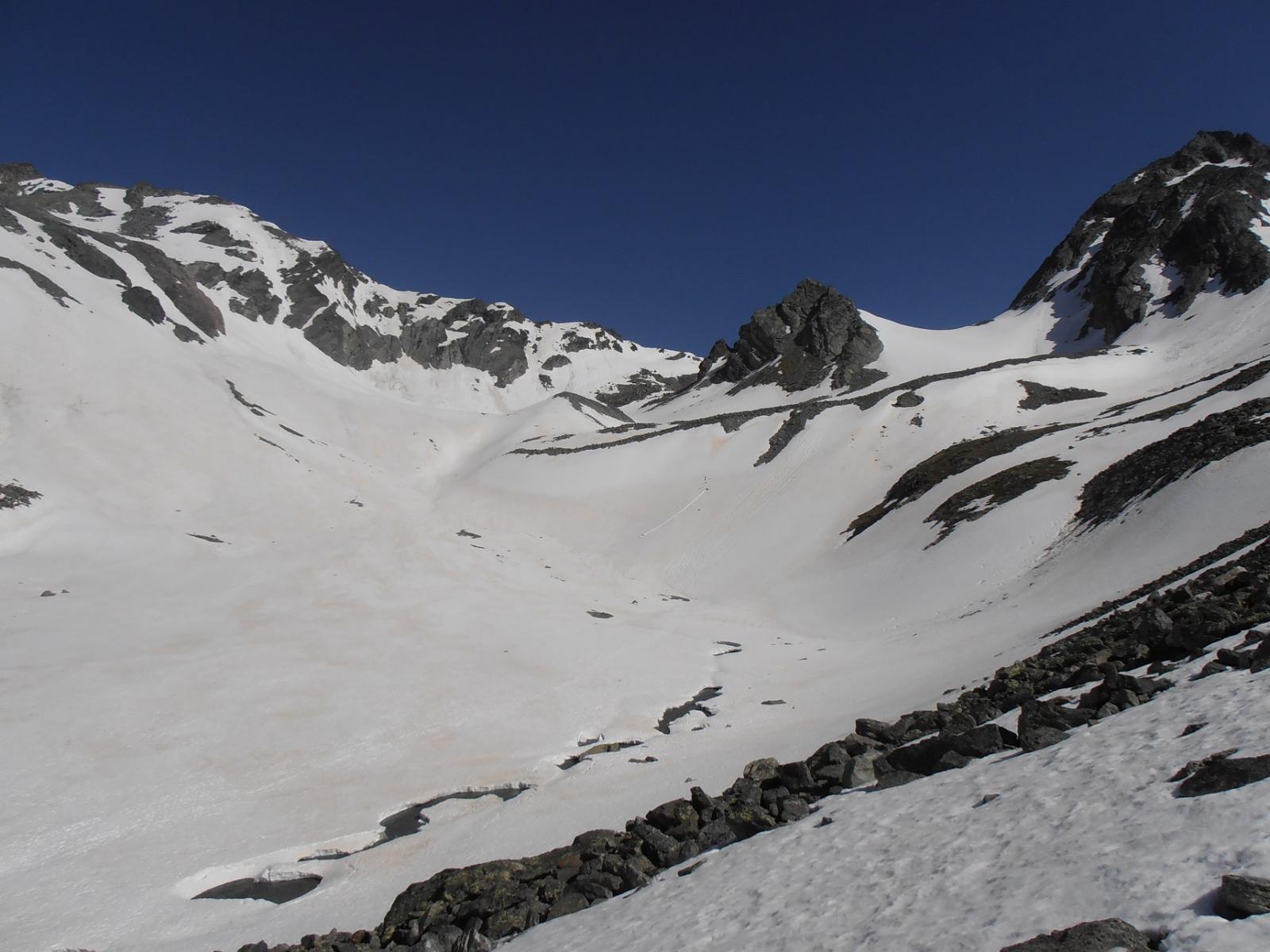 | tini | 11 - inizio discesa, arriva il maltempo da ovest | tini | 01 - Gran Chaux e Grande e Piccolo Avert sullo sfondo | tini | 02 - Punta Tessonet | tini | 03 - Punta di Leppe (a sx innevata) e C.di Leppe salita dal Vallone di S.Marcel | tini | 04 - Ingresso nel vallone di S.Marcel sotto l'imponente sella innevata del Col di Salé | tini | 05 - immettendosi nel vallone si intuisce la meta, ancora molto lontana | tini | 06 - il Vallone si allarga dopo i ripidi pendii nella zona delle miniere di Rame | tini | 07 - si calzano le ciaspole a partire da Mulac, dopo 1,5h di cammino | tini | 08 - i pendii ripidi hanno scaricato di recente, molto vicino a dove bisogna passare | tini | 09 - scorcio sul Grand Combin salendo | tini | 10 - in questa zona si inizia a salire un pò | tini | 11 - valanghe recenti proprio sul percorso, nessuna traccia di passaggio | tini | 12 - sulla valanga | tini | 13 - Lago Layet, non seguire la strada, a dx, ma risalire a sx se la neve è sicura (Roccette da aggirare) | tini | 14 - se si segue la strada bisogna tagliare questo pendio innevato...