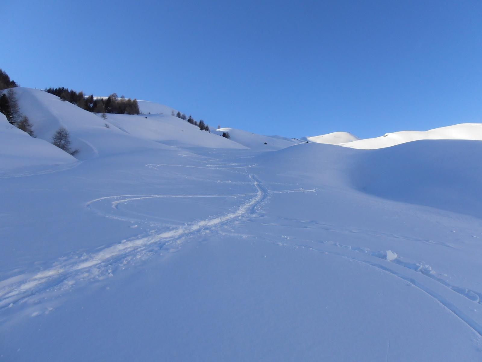 | tini | 01 - panoramica sulla gita | tini | 02 - Tutto immaccolato, aspetta soltanto me... | tini | 03 - Deep powder | tini | 04 - un tratto ripido sotto Vendorere | tini | 05 - Lungo la pista attenzione ai muretti, se non ben coperti dalla neve sono alti e ripidi | tini | 06 - La pista della centrale idroelettrica | tini | 07 - nelle ampie praterie