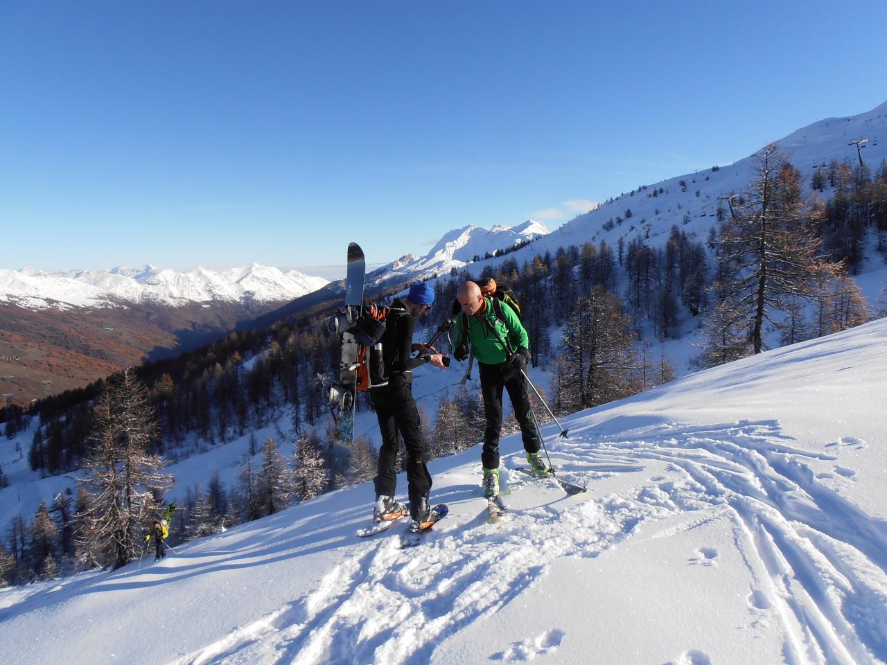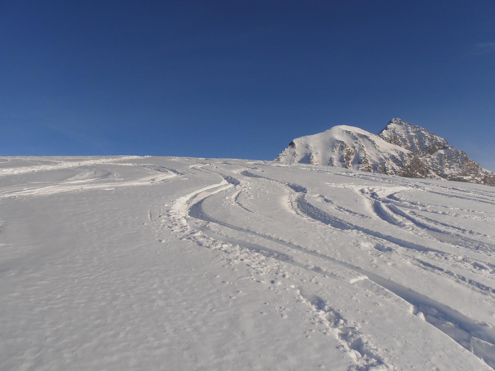 | tini | 01 - farina fantastica | tini | 02 - neve da sogno | tini | 03 - unico coinquilino di gita... Hervé Barmasse | tini | 04 - panorama verso il Cervino | tini | 05 - verso la Valle Centrale | tini | 06 - Punta Faliniere con tracce di salita e discesa | tini | 07 - le curve nella polvere che sogno di fare ad ogni gita