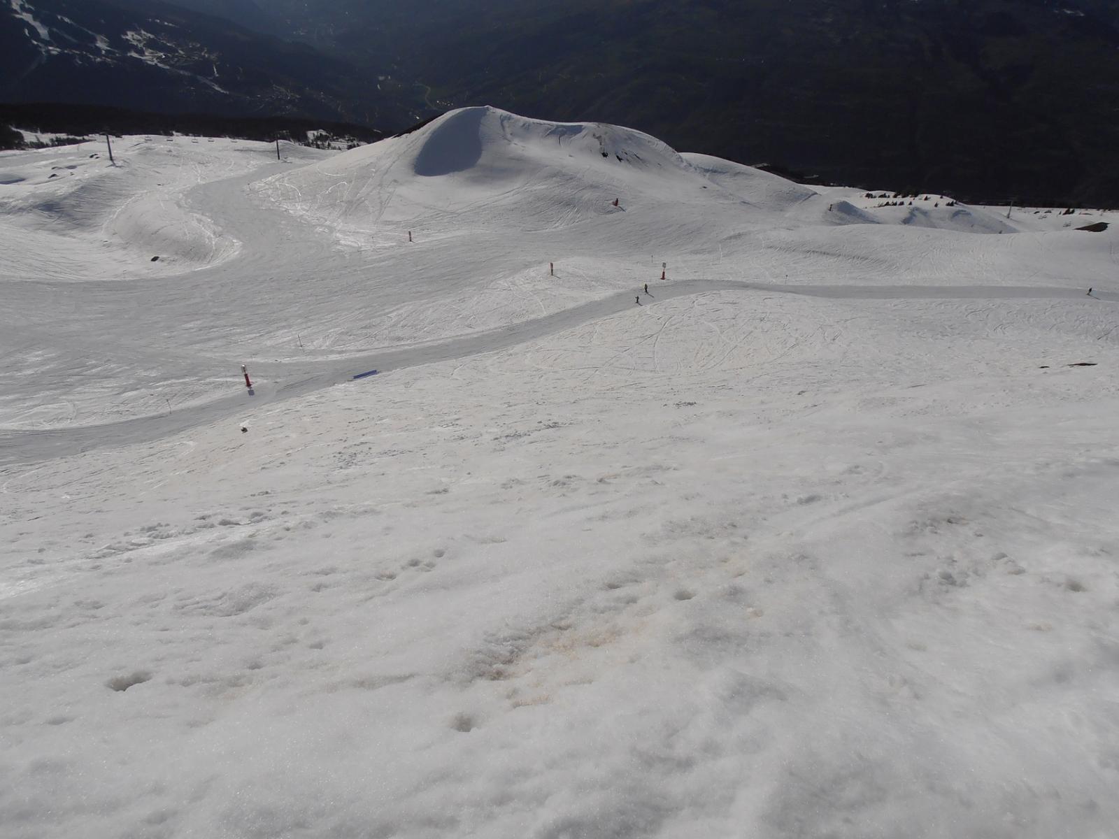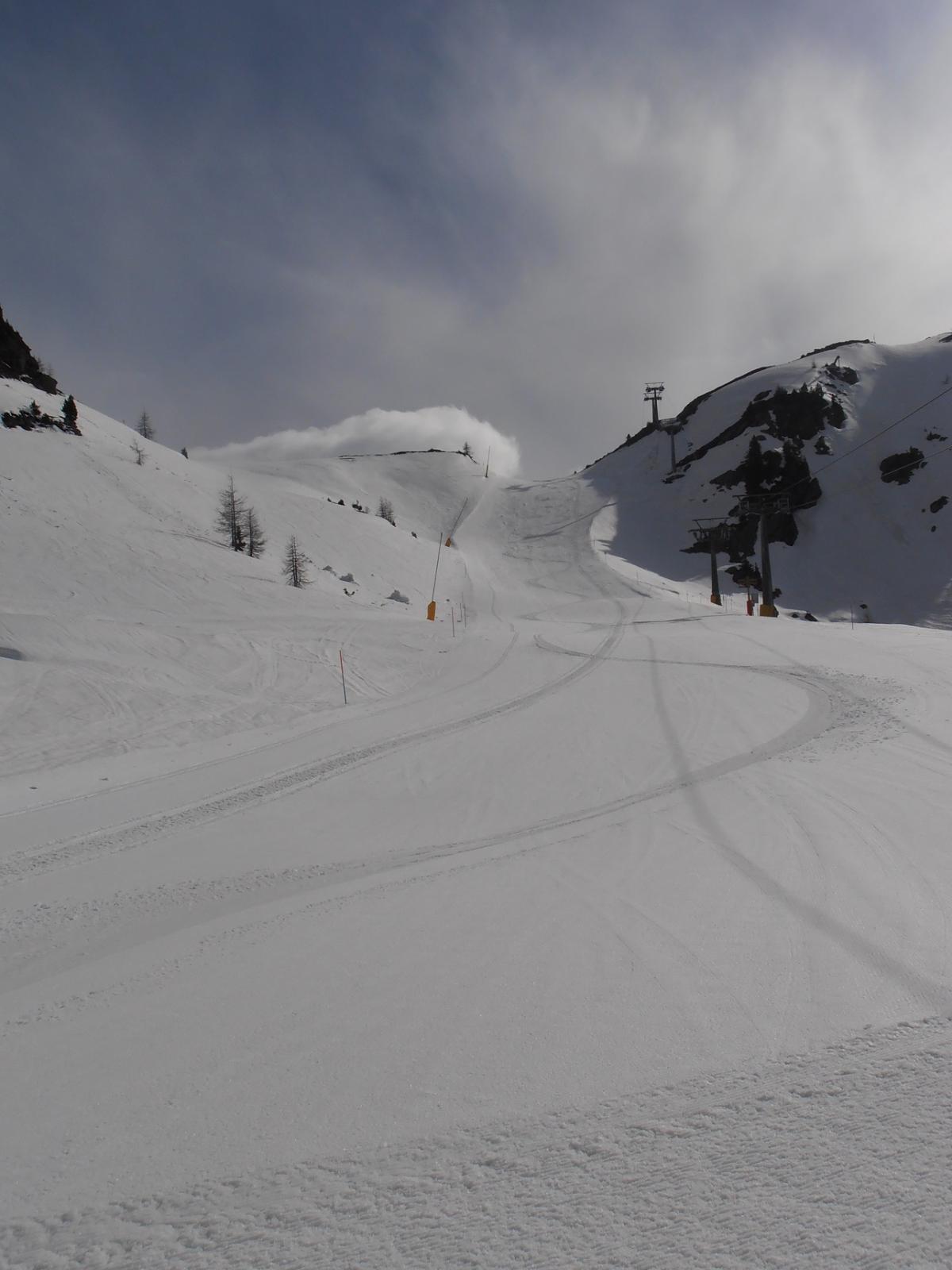 | tini | 01 - nel pianoro centrale neve soltanto più sulle piste | tini | 02 - sulla pista all'ombra zona Col Fenetre neve persino duretta | tini | 03 - discesa dall'arrivo della seggiovia Collet, bella neve primaverile | tini | 04 - si fanno curvoni veloci su fondo ben lisciato dal sole
