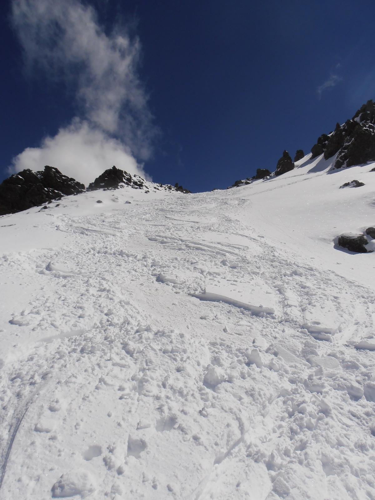 | tini | 01 - gran bella giornata, Mont Fallere sullo sfondo | tini | 02 - salire oltre non mi sembrava più sicuro, nessun passaggio oggi e segnali di instabilità | tini | 03 - nel vallone guardando verso Emilius e Grivola | tini | 04 - ingresso nel vallone | tini | 05 - versante S-O della Becca France sono tutte slavine | tini | 06 - curvoni per sopravvivere nella crosta | tini | 07 - curve che fanno faticare più che a salire, vera crosta 5 stelle
