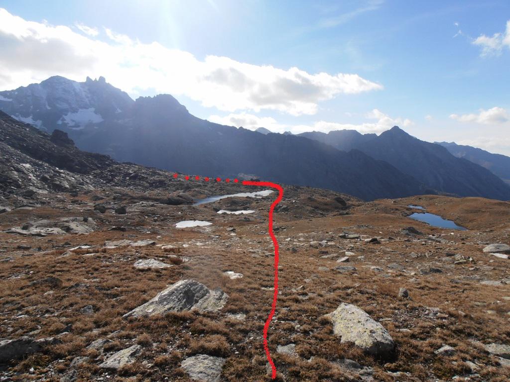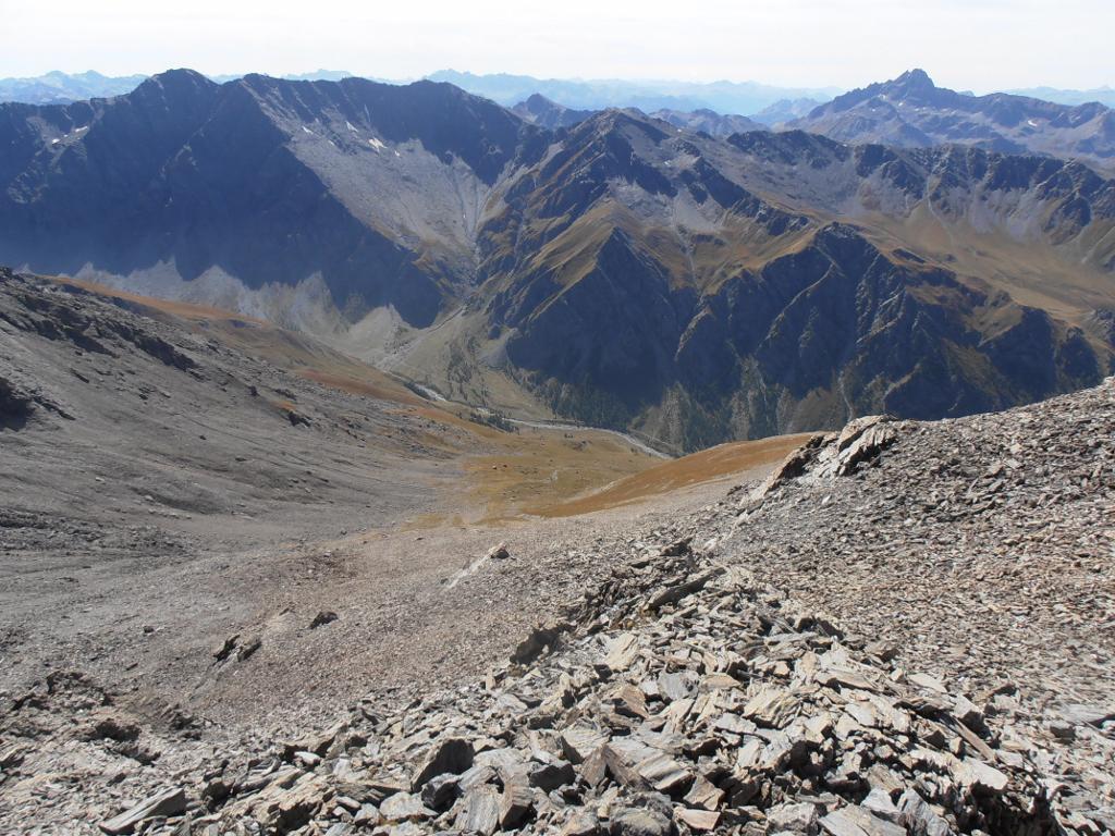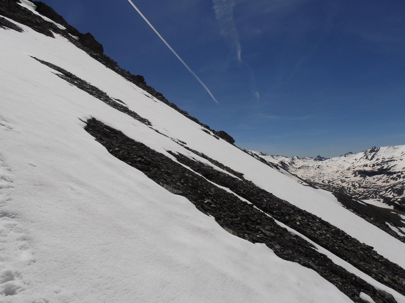 | tini | 01 - Aguilles d'Arves viste dal pendio finale | tini | 02 - inizio discesa ripido e tra pietre affioranti | tini | 03 - il plateau sotto la cima | tini | 04 - lungo la salita tra le gobbe | tini | 05 - discesa a centro vallone