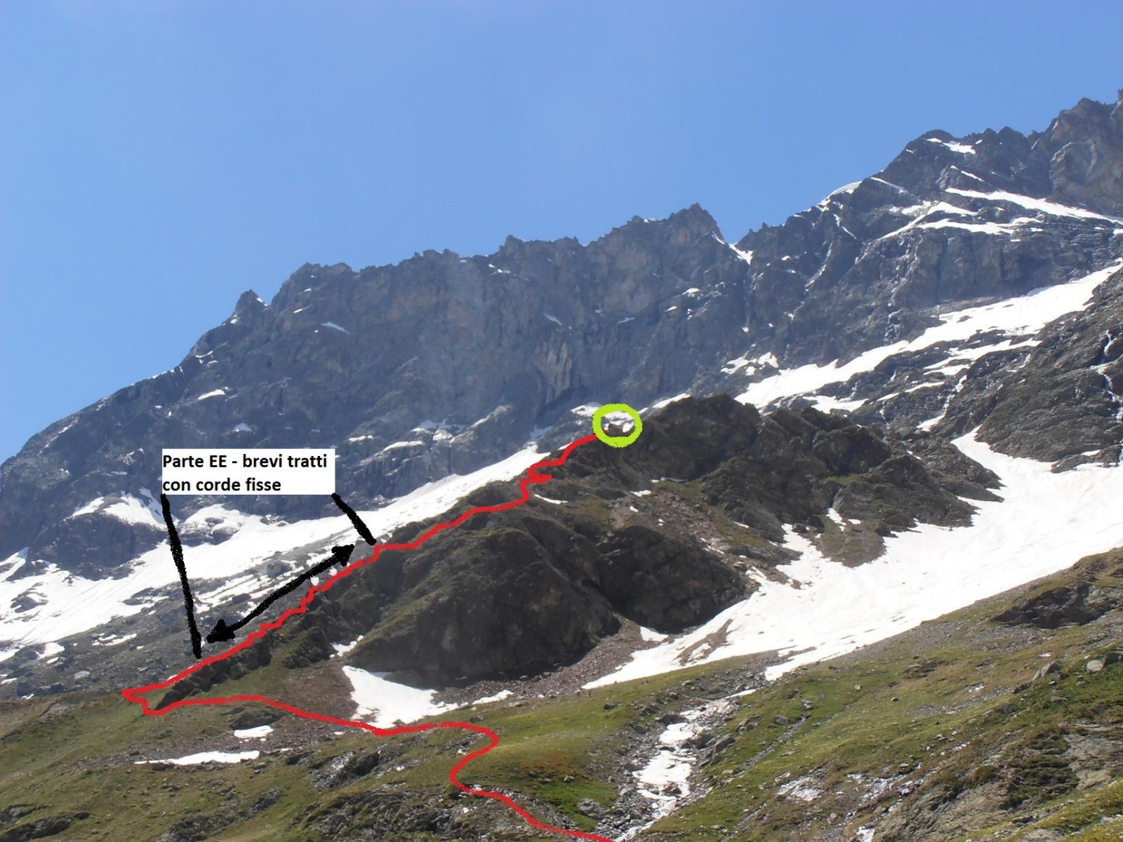 | tini | 01 - Bec Fontaney versante di salita | tini | 03 - pendenza nevaio | tini | 04 - Oratorio e Rifugio Cuney | tini | 05 - Bec Fontaney dal lago sottostante | tini | 06 - sentiero con catene al Passet | tini | 07 - panoramica Col Chaleby