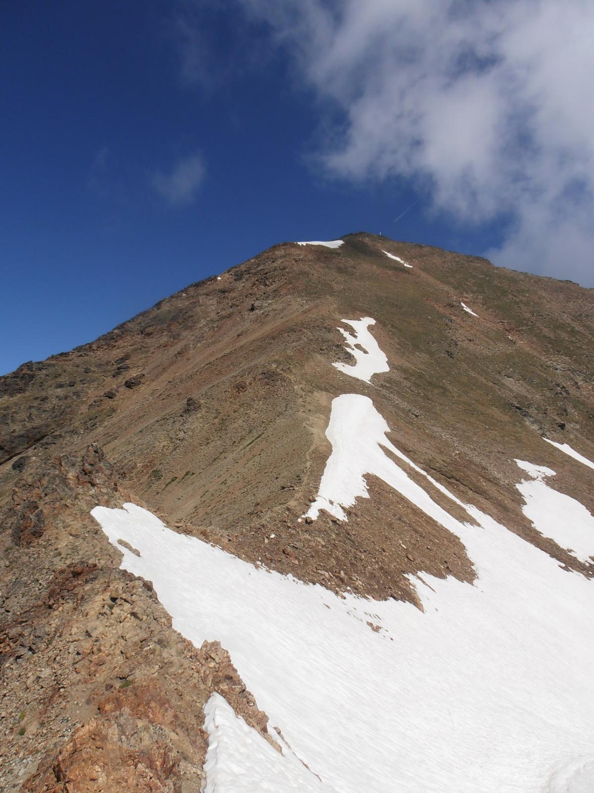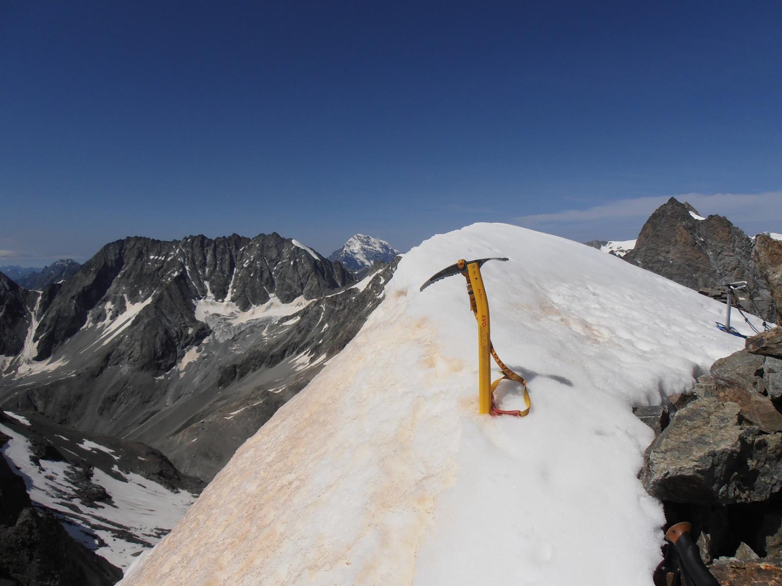 | tini | 09 - la Punta Kurz ed il Col Collon, viste dal rif.Nacamuli | tini | 01 - la Cima | tini | 02 - la parete di ghiaccio | tini | 03 - vista completa della cresta di salita (a dx) | tini | 04 - discese e risalite andando verso il Col de Bézin | tini | 05 -la cresta di salita inizia ampia e su nevai | tini | 06 - a metà cresta la parte più scoscesa | tini | 07 - ecco il punto che richiede maggior attenzione, visto scendendo | tini | 08 - pendenza ghiacciaio, verso ovest | tini | 09 - in cima sguardo giù lungo la parete ghiacciata | tini | 10 - dalla cima verso il Signal de Mean Martin | tini | 11 - Curiose pietre nella zona vicino alla cima | tini | 01 - Punta Ramiere vista dal Colle | tini | 02 - risalendo il nevaio per arrivare in cresta senza passare dal colle | tini | 04 - Queyras