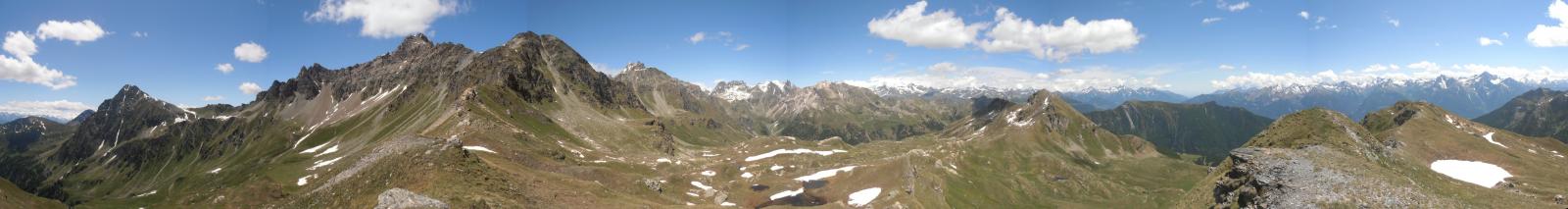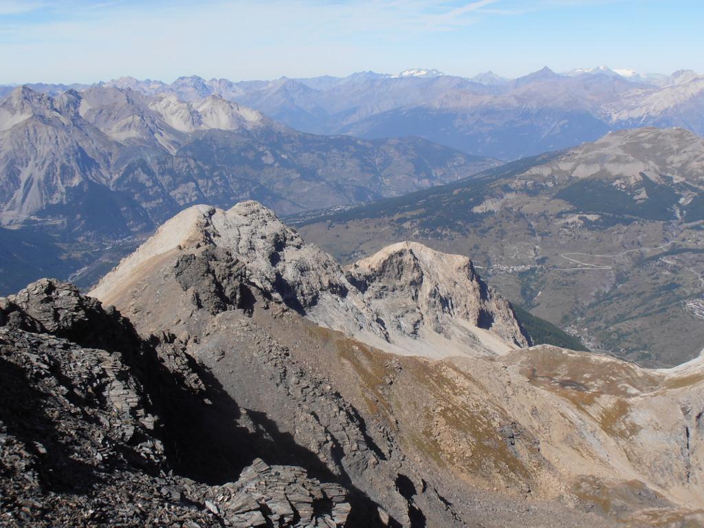 | tini | 01 - l'anticima con gli Ecrins sullo sfondo | tini | 02 - panoramica Pelvoux - Barre | tini | 03 - il percorso di salita dalla cima | tini | 04 - il ponte Ciatagnera | tini | 05 - a metà vallone tra Roc del Boucher a sx e Punta Ciatagnera a dx | tini | 06 - la Punta Ciatagnera | tini | 07 - la cresta verso il Monte Furgon | tini | 08 - dettaglio Monte Bianco | tini | 09 - Dettaglio Monte Rosa