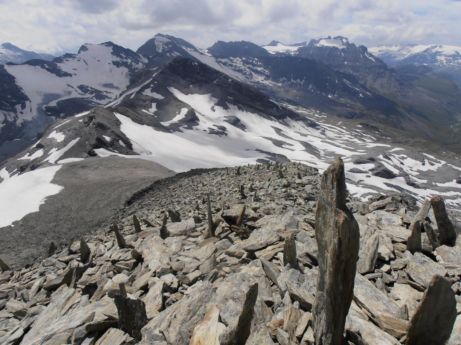 | tini | 08 - bivacco, 6 posti letto con coperte | tini | 09 - sulla cresta finale, anticima Grand'Hoche, Grand'Hoche e Guglia d'Arbour | tini | 10 - Vallée des Acles dall'alto | tini | 11 - la Canala sotto la Clotesse | tini | 01 - la cima tra Monte Bianco e Grandes Jorasses | tini | 02 - itinerario di salita visto dal pianoro a quota 2350 | tini | 03 - dalla cima al colle, sfaciumi appoggiai su placche rocciose | tini | 04 - come passare la piana paludosa senza bagnarsi, vista scendendo | tini | 05 - Guglia di Bonalé, bella bella | tini | 06 - uniche anime vive incontrate oltre gli alpeggi | tini | 07 - Petite Rochere dal colletto | tini | 08 - Aguille du Midi, uno dei pochi luoghi sul territorio italiano da cui si vede così bene | tini | 09 - Guglia di Bonalé vista dalla cima | tini | 10 - dalla cima vista su Grand Combin e Mont Velan | tini | 11 - dalla cima Dent d'Herens e Cervino