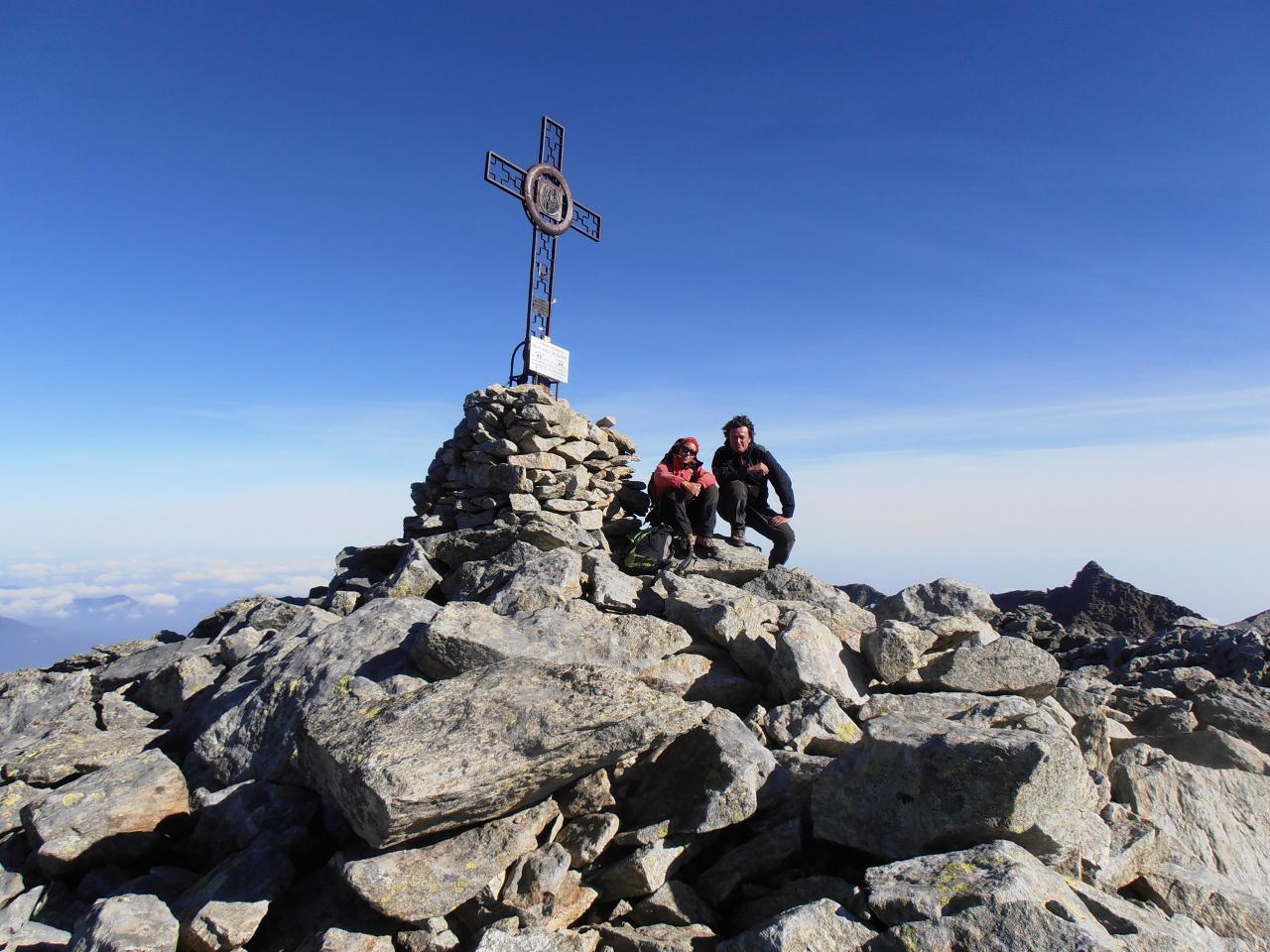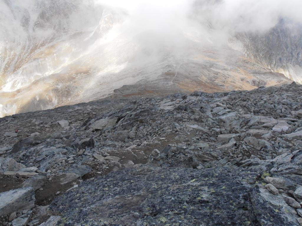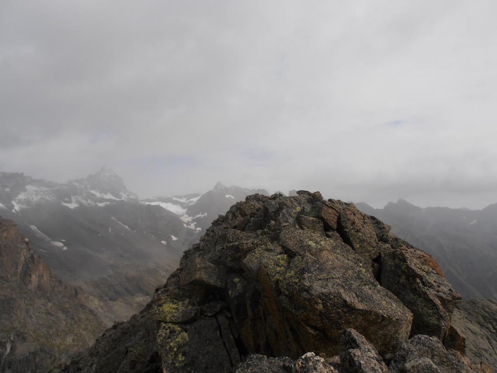 | tini | 01 - foto di vetta, infreddoliti ma contenti | tini | 02 - panorama nella parte alta | tini | 03 - inizio parte rocciosa sotto la pioggia | tini | 04 - al mattino sembrava ci fosse persino il sole, una volta bucato lo strato di nuvole in basso | tini | 05 - sopra il primo strato di nuvole, ma sotto la pioggia... laggiù il Pic de Rochebrune innevato | tini | 06 - inizio rocce | tini | 07 - parte rocciosa a metà | tini | 8 - parte rocciosa in alto