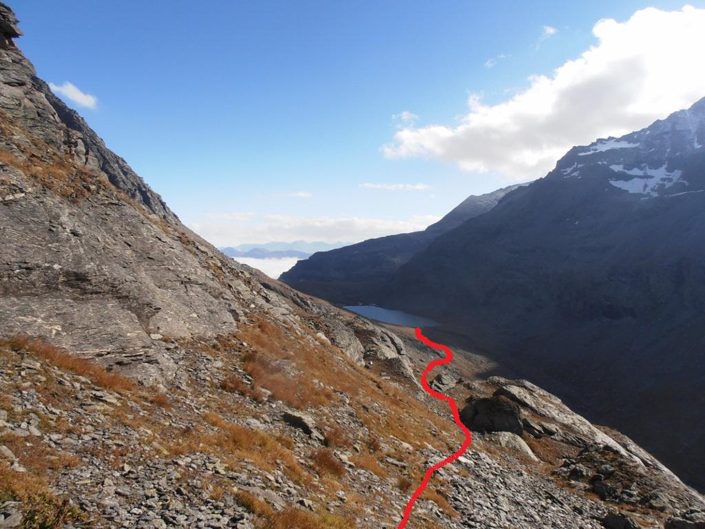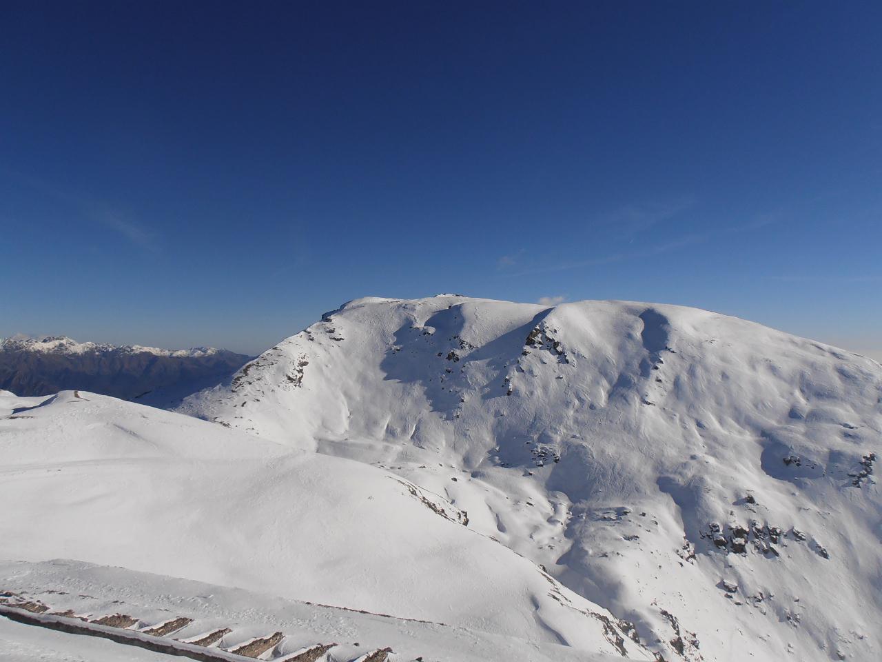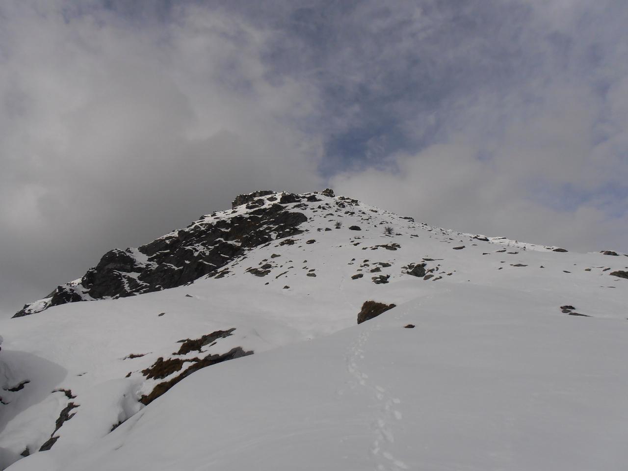 | tini | 01 - percorso di salita visto dal forte Roncia | tini | 02 - panorama sul lago dalla cima | tini | 03 - sotto il Col du Lou, tracce di sentiero nel canalone | tini | 04 - forte Roncia | tini | 05 - il sentiero militare è ottimo e dalle pendenze dolci fino a poco sotto il Col du Lou | tini | 06 - in questa zona prossima al colle inizia la ripida pietraia | tini | 07 - la pietraia finale vista dalla cresta sopra il colle | tini | 08 - dal colle alla cima, delicato con verglas | tini | 09 - lungo la cresta finale | tini | 10 - la cima con l'antenna vista dall'anticima | tini | 11 - roccette e pietraie insidiose con il verglas