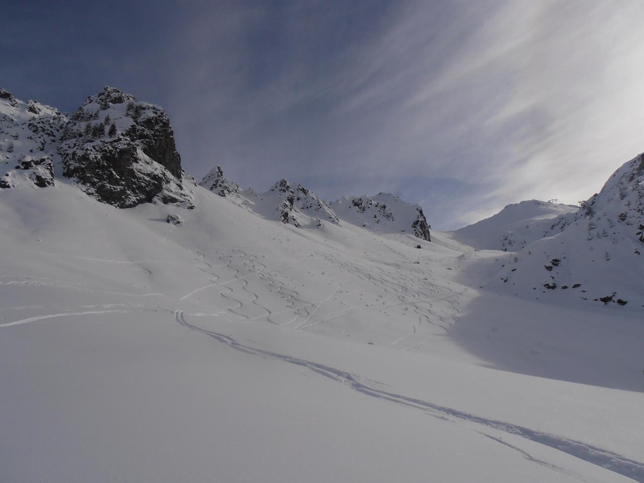 | tini | 01 - pointe du Fond Blanc vista dall'arrivo della seggiovia Comborciere | tini | 02 - bel pendio fuoripista sotto Les Deux Tetes | tini | 03 - nel fuoripista accanto alle Deux Tetes | tini | 04 - alla base del pendio | tini | 05 - pendio fuoripista visto da lontano