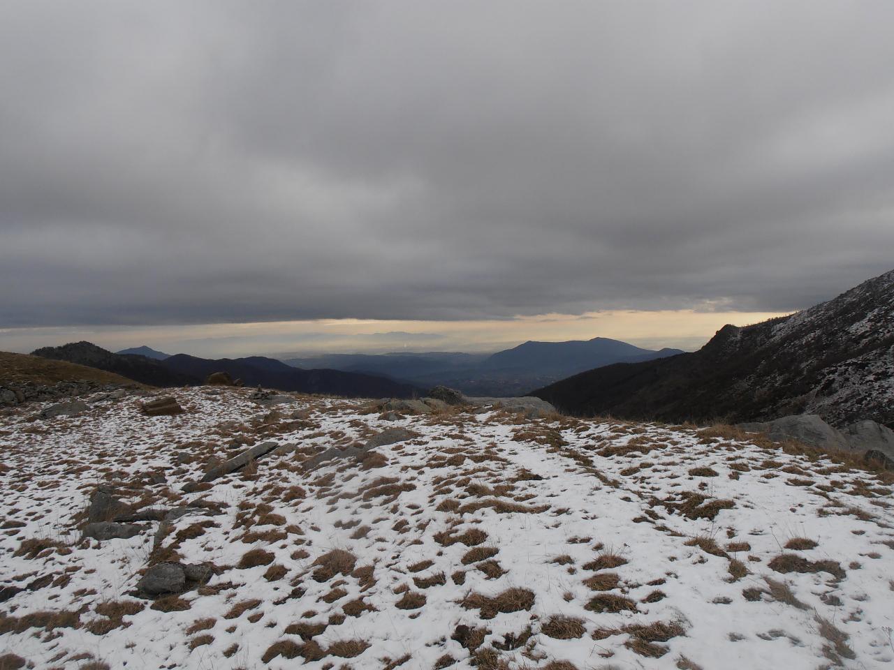 | tini | 10 - Rocca del Prete e pianoro adiacente | tini | 11 - inizia il nevaio, prima parte in salita | tini | 12 - sul breve nevaio tra Cruvin e Lunella | tini | 13 - tratto in piano e risalita per riprendere il sentiero, le tracce in basso portano fuori percorso | tini | 14 - si prosegue un pò sotto la cresta per evitare la neve residua | tini | 15 - Colletto sotto la rampa per la cima, il nevaio si evita scendendo sul lato valsusino | tini | 16 - in discesa, fine del nevaio e ritorno fuori dalla nuvola | tini | 17 - scendendo dal Colle Cruvin nel vallone del Gravio | tini | 18 - vista della Rocca Patanua dal pianoro adiacente alla Rocca del Prete | tini | 19 - si scende tra nevai marci e rododendri | tini | 20 - la neve finisce quando il vallone svolta a sud | tini | 21 - Ecco in lontananza l'Alpe Praburet, primo segno di civiltà scndendo in questo vallone selvaggio | tini | 22 - il versante Est della Rocca del Prete | tini | 01 - Monte Avic dal Bosco Ponton | tini | 02 - Verso la valle centrale