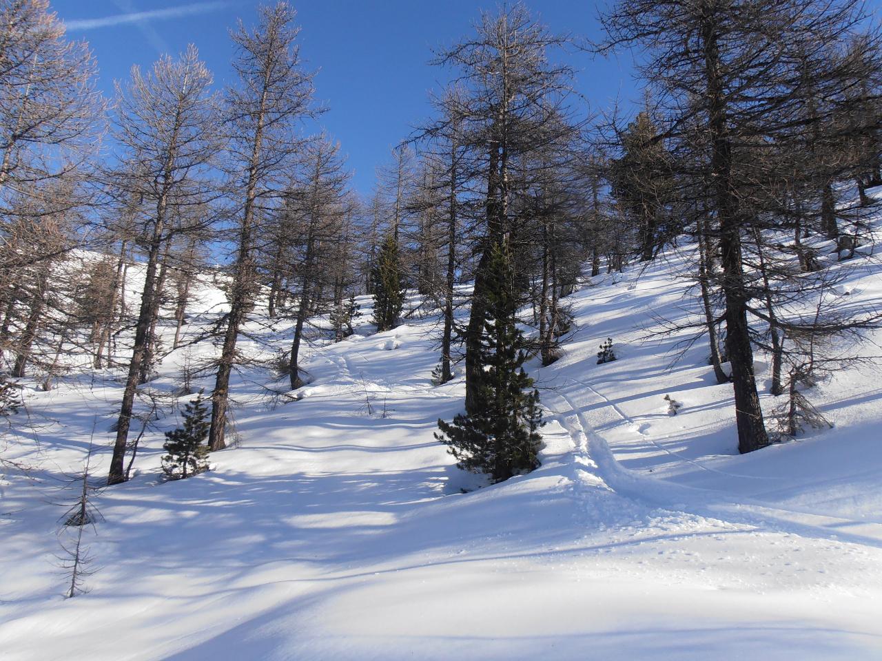 | tini | 01 - Vista sulla Valournenche e Torgnon dalla cresta tra col des Bornes e Colle di S.Pantaleone | tini | 02 - ambiente da fiaba nel bosco | tini | 03 - le praterie alte di Saint Denis innevate | tini | 04 - nel bosco solo la mia traccia | tini | 05 - sentiero tra Col des Bornes e Colle di S.Pantaleone | tini | 06 - Sotto il Colle di S.Pantaleone neve bella, ma in buona parte si scia nel bosco