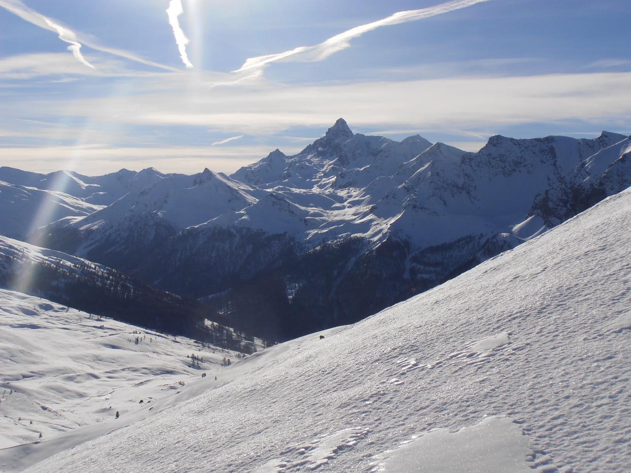 | tini | 01 - in cima alla Saurel, lo Chaberton sullo sfondo | tini | 02 - arrivo in cima alla Saurel da N-E | tini | 03 - è tornato! | tini | 04 - l'imponente sagoma dello Chaberton incombe tutto il giorno | tini | 05 - arrivando in cresta ad est della cima Saurel | tini | 06 - salita alla Cima Saurel lungo la cresta N-E | tini | 07 - vista dalla Rognosa del Sestriere fino alla Durmillouse... una carrellata di cime sciabili | tini | 08 - Pic de Rochebrune | tini | 09 - Nel bosco sotto colle Bercia ancora un pò di farina pesante all'ombra