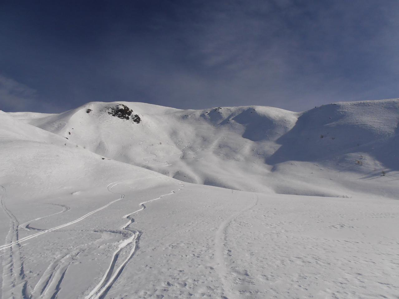 | tini | 01 - in cima alla Fournier | tini | 02 - discesa sul versante Nord | tini | 03 - la cresta verso il Begino e la partenza per la discesa sul versante nord | tini | 04 - salendo sopra il Lago Nero, in prossimità del confine | tini | 05 - la cima vista da Est | tini | 06 -in discesa sul versante Nord, ancora farina | tini | 07 - vista della cima dal Lago Nero