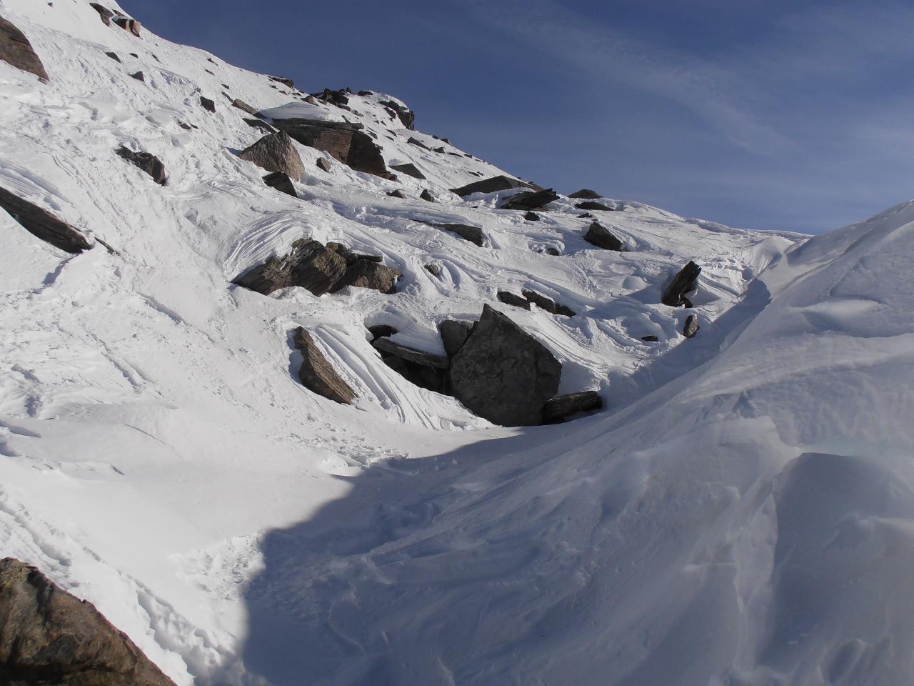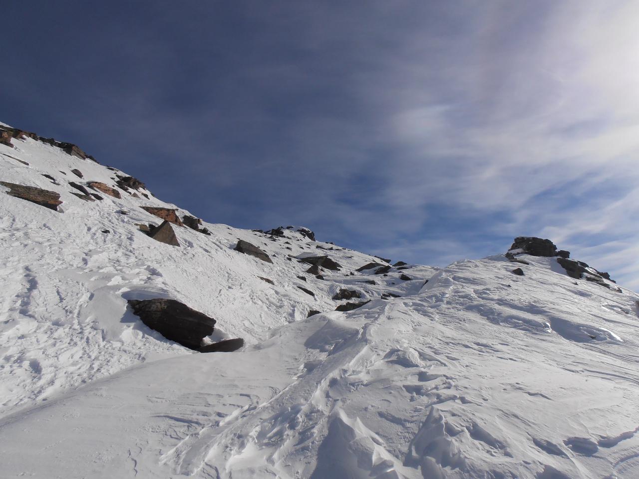 | tini | 05 - la cresta finale è parzialmente spoglia dalla neve, ben in anticipo rispetto alle foto degli anni precedenti | tini | 06 - all'improvviso le nuvole spariscono ed appare laggiù la Pointe de Mean Martin | tini | 07 - discesa bella, quì la parte alta | tini | 08 - panorama verso ovest, Pointe de Bezin sud e nord; sullo sfondo Buffettes e Mean Martin | tini | 09 - il pendio nord se lo si sale direttamente | tini | 10 - ancora un ottimo innevamento a centro vallone | tini | 11 - nella parte bassa neve magnifica | tini | 12 - si arriva sci ai piedi fino al Pont de la Neige sfruttando il ruscello ancora coperto dalla neve | tini | 01 - il refuge d'Ambin | tini | 02 - il refuge d'Ambin con Gran Cordonnier e Sommeiller sullo sfondo | tini | 03 - dettaglio Petit Vallon con cascate di ghiaccio | tini | 04 - alla partenza da Le Maroqua tutta la valle | tini | 05 - scordio sui Denti d'Ambin, visibili poco dopo la partenza | tini | 06 - ingresso nel pianoro sotto il rifugio | tini | 07 - risalendo i nevai resifui sotto il rifugio