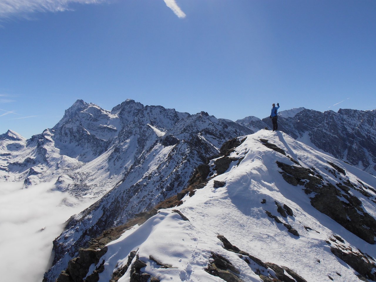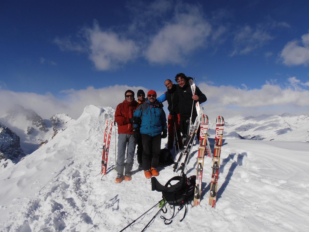 | tini | 01 - finalmente in cima! | tini | 02 - questa grande valanga di fondo sotto l'Almiane non c'era sabato scorso | tini | 03 - nuvole e Pierre Menue | tini | 04 - cresta soprastante la parete nord | tini | 05 - la Rognosa d'Etiache dal Sommeiller