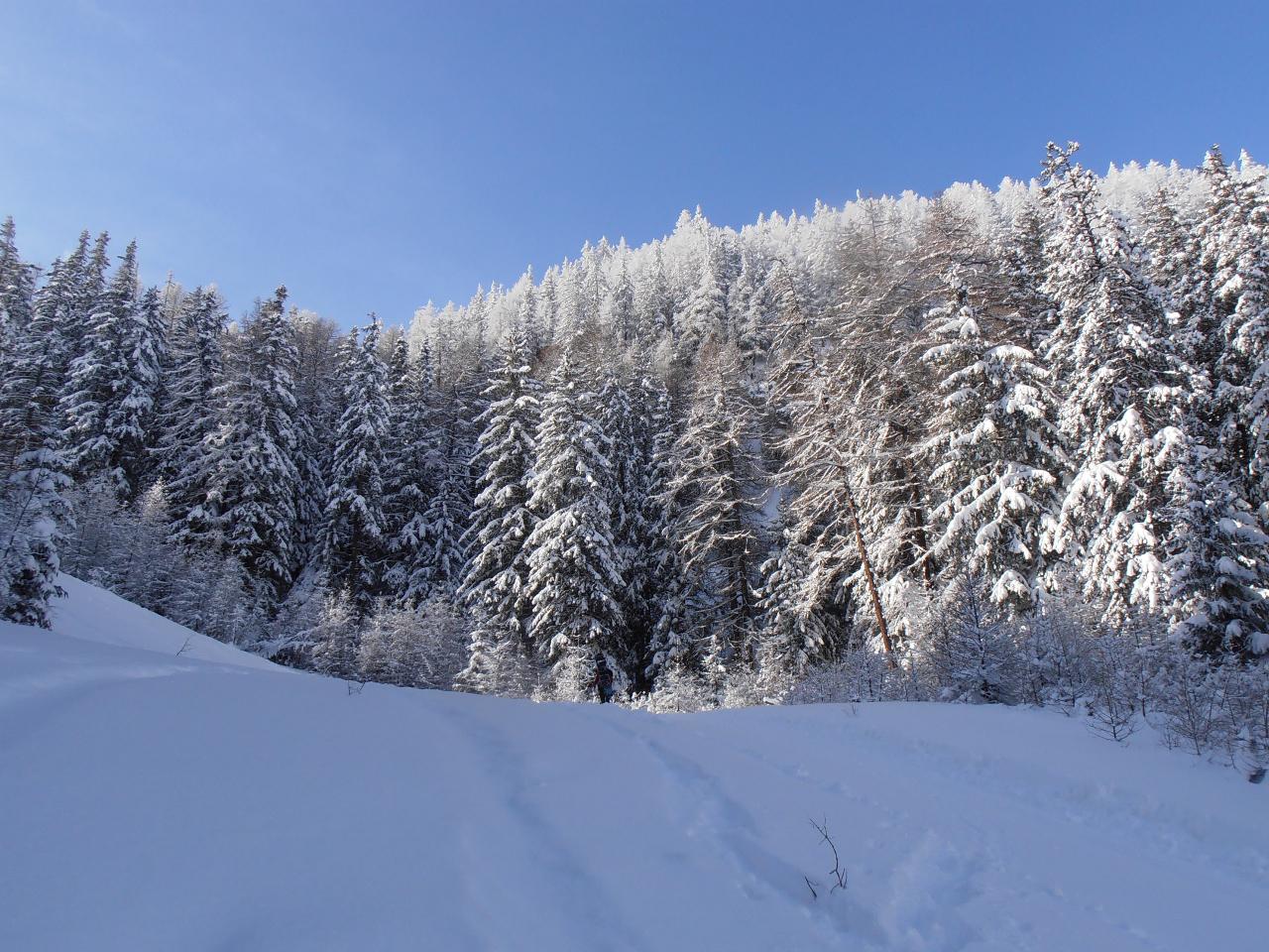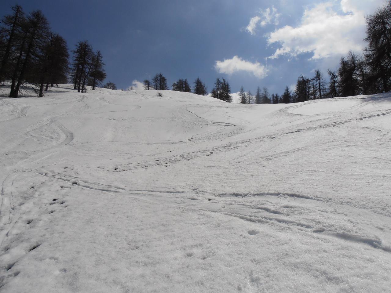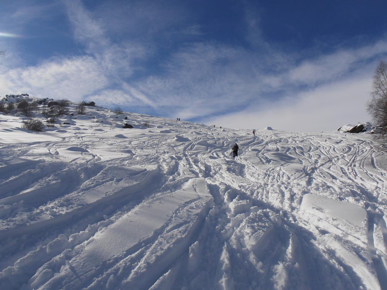 | tini | 01 - Grand'Hoche salendo dal Rif.G.Rey | tini | 02 - tutto molto segnato dai passaggi | tini | 03 - arrivo a Chateau Beaulard | tini | 04 - neve bella a tratti nel bosco, ma fondo assente o quasi
