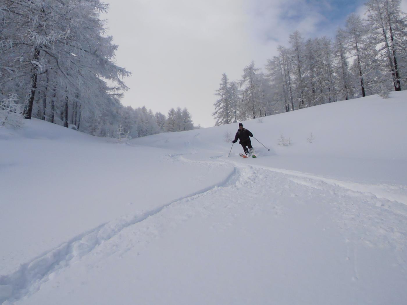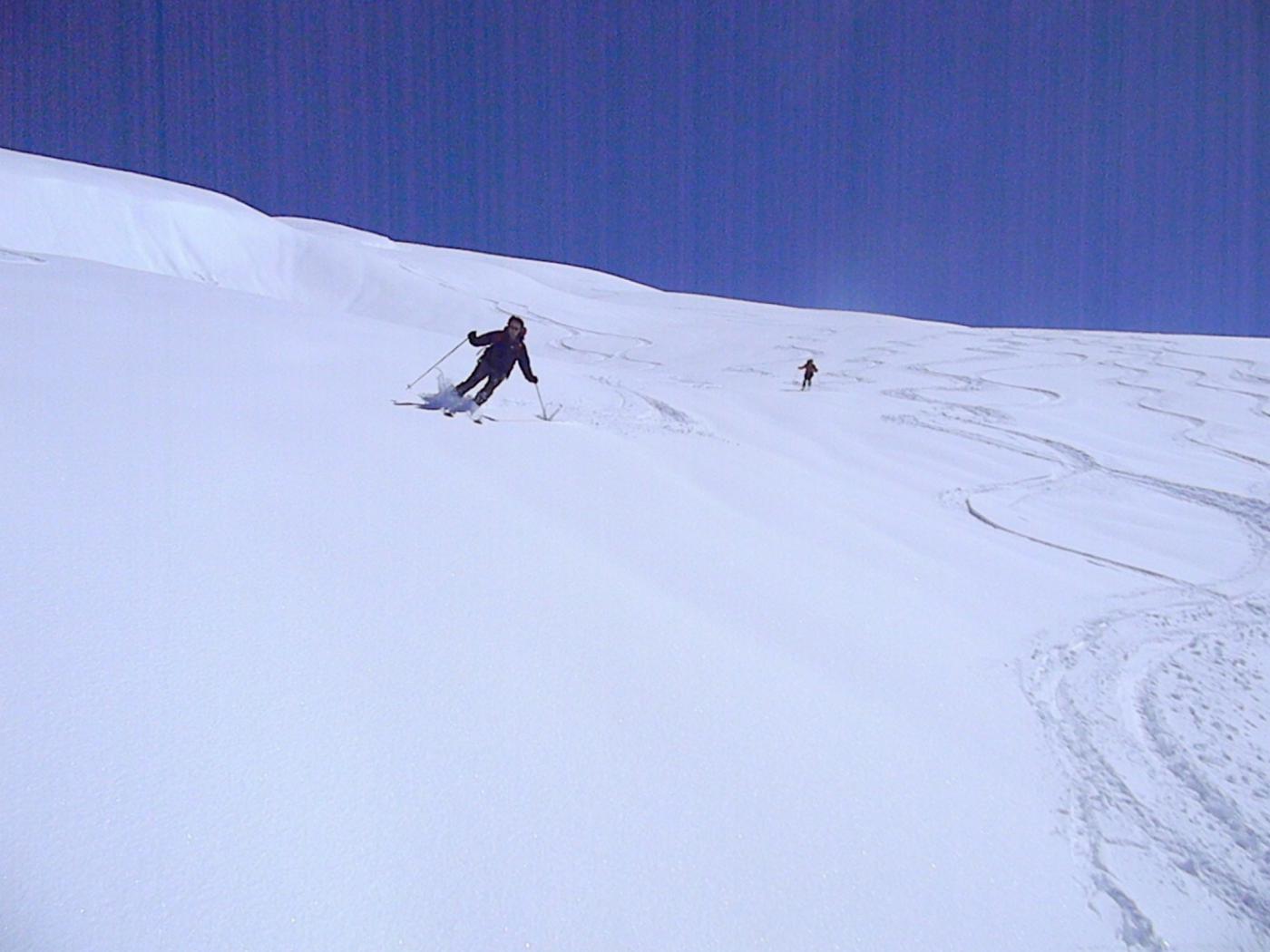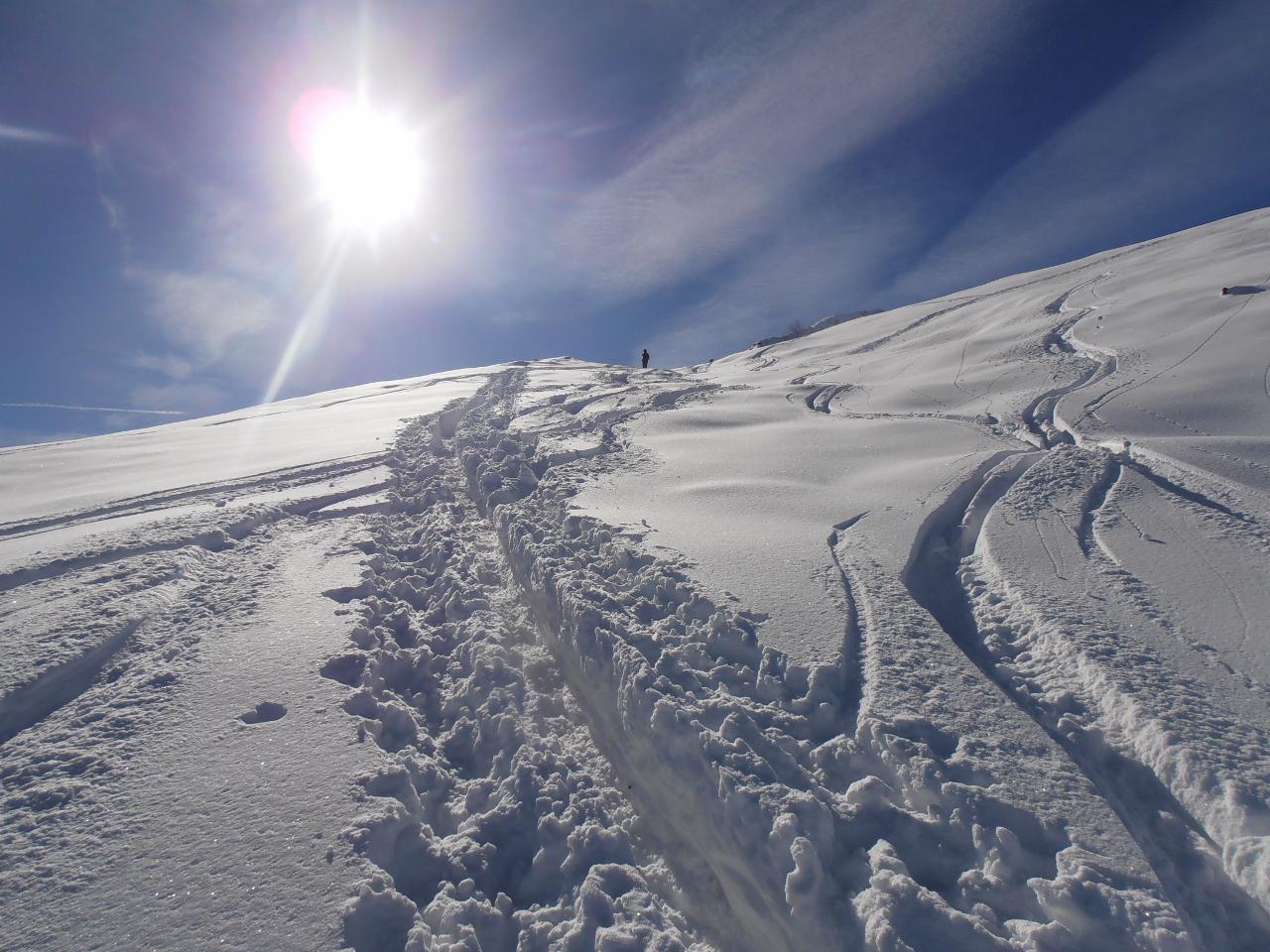 | tini | 01 - 30 cm di farina | tini | 02 - neve da sballo | tini | 03 - il pendio prima dei numerosi passaggi e ri-passaggi di giornata | tini | 04 - traccia elegante | tini | 05 - bella traccia sfruttando le zone all'ombra | tini | 06 - l'arrivo in cima | tini | 07 - tutti pronti a scendere