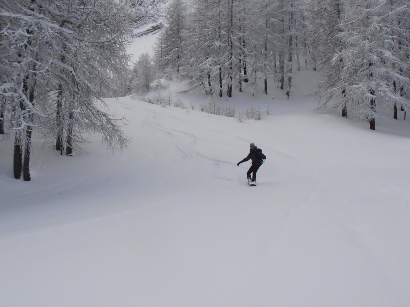 | tini | 01 - sotto la Gand'Hoche | tini | 02 - accenni di belle curve solo in alto | tini | 03 - arrivo al rifugio G.Rey | tini | 04 - salendo lungo le vecchie piste nel bosco