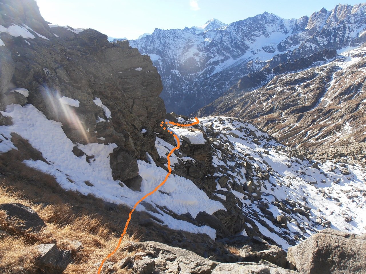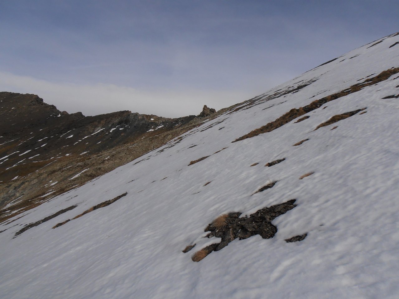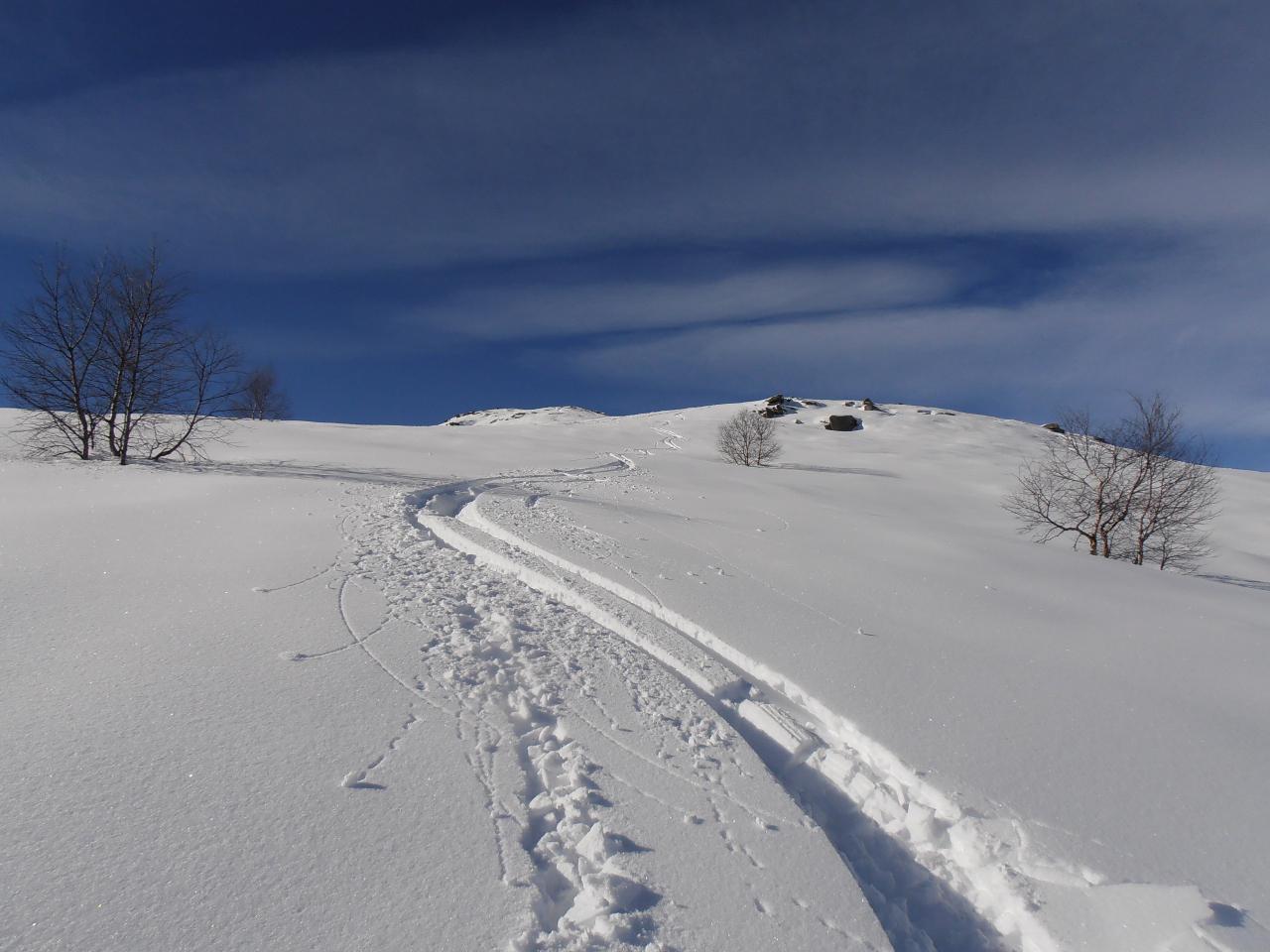 | tini | in cima | tini | traverso sotto la cima, volendo si segue la comoda stradina | tini | si scia bene nella farina invecchiata | tini | Becca di Nona in condizioni quasi escursionistiche