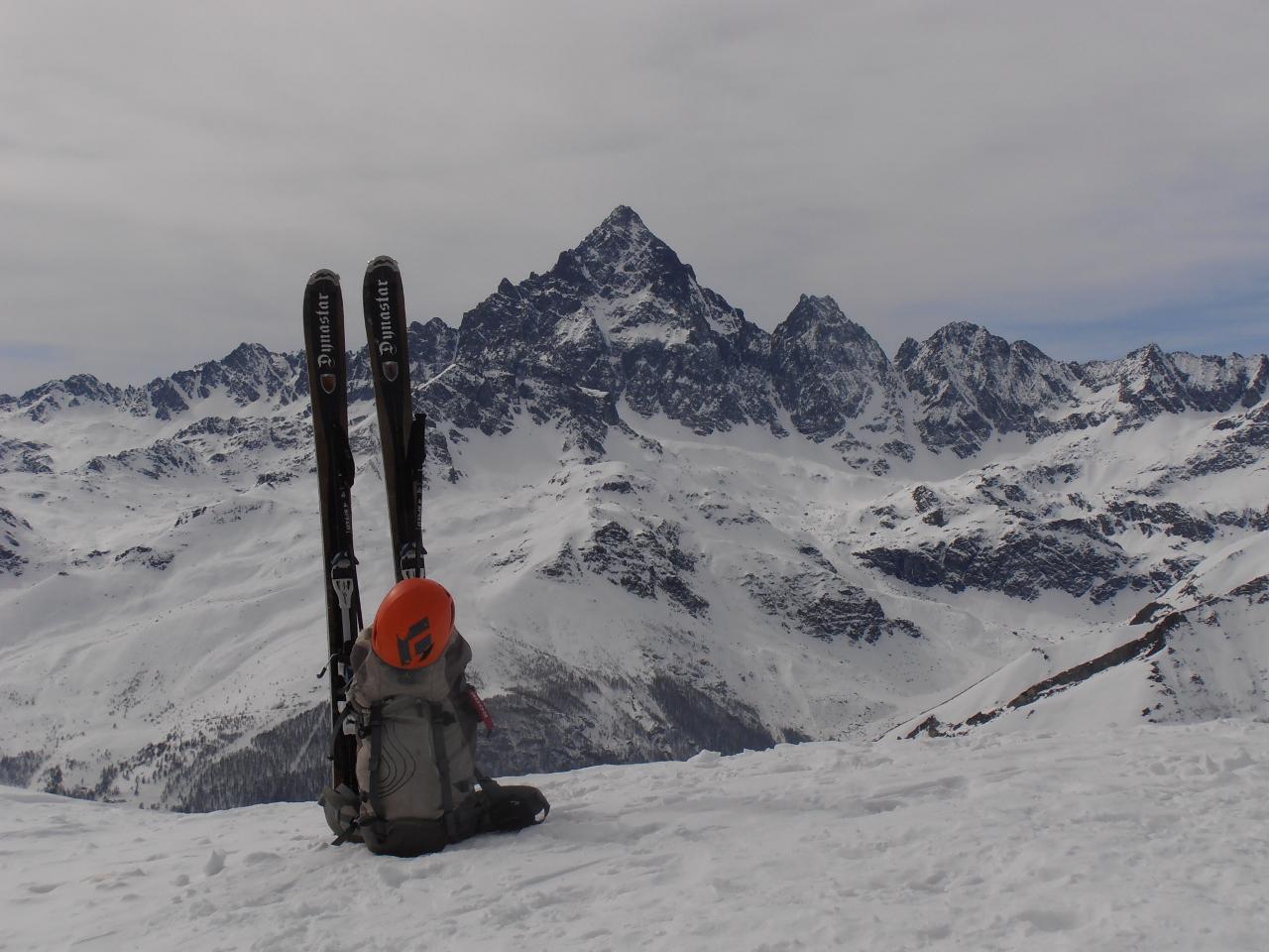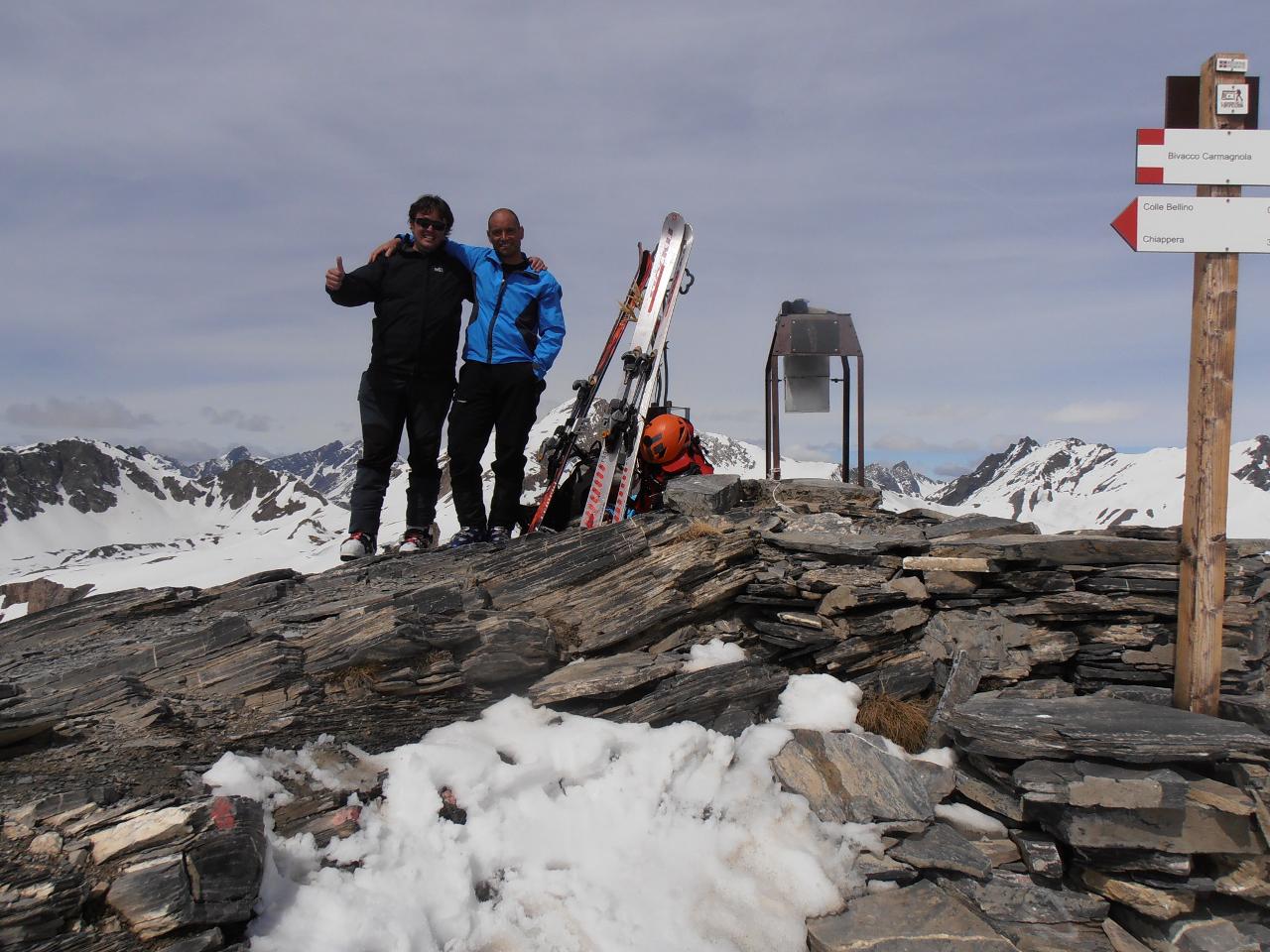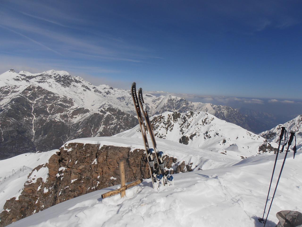 | tini | 01 - in cima con i Denti d'Ambin innevati sullo sfondo | tini | 02 - salita con tanta neve pesante da tracciare | tini | 03 - panorama dalla cima | tini | 04 - alla partenza stamattina neve da subito | tini | 05 - nonostante la buona quantità di neve non è ancora una cima sciabile | tini | 06 - ravanamento in discesa | tini | 07 - Cima di Bard e Giusalet | tini | 08 - l'arrivo in cima | tini | 09 - inizio discesa