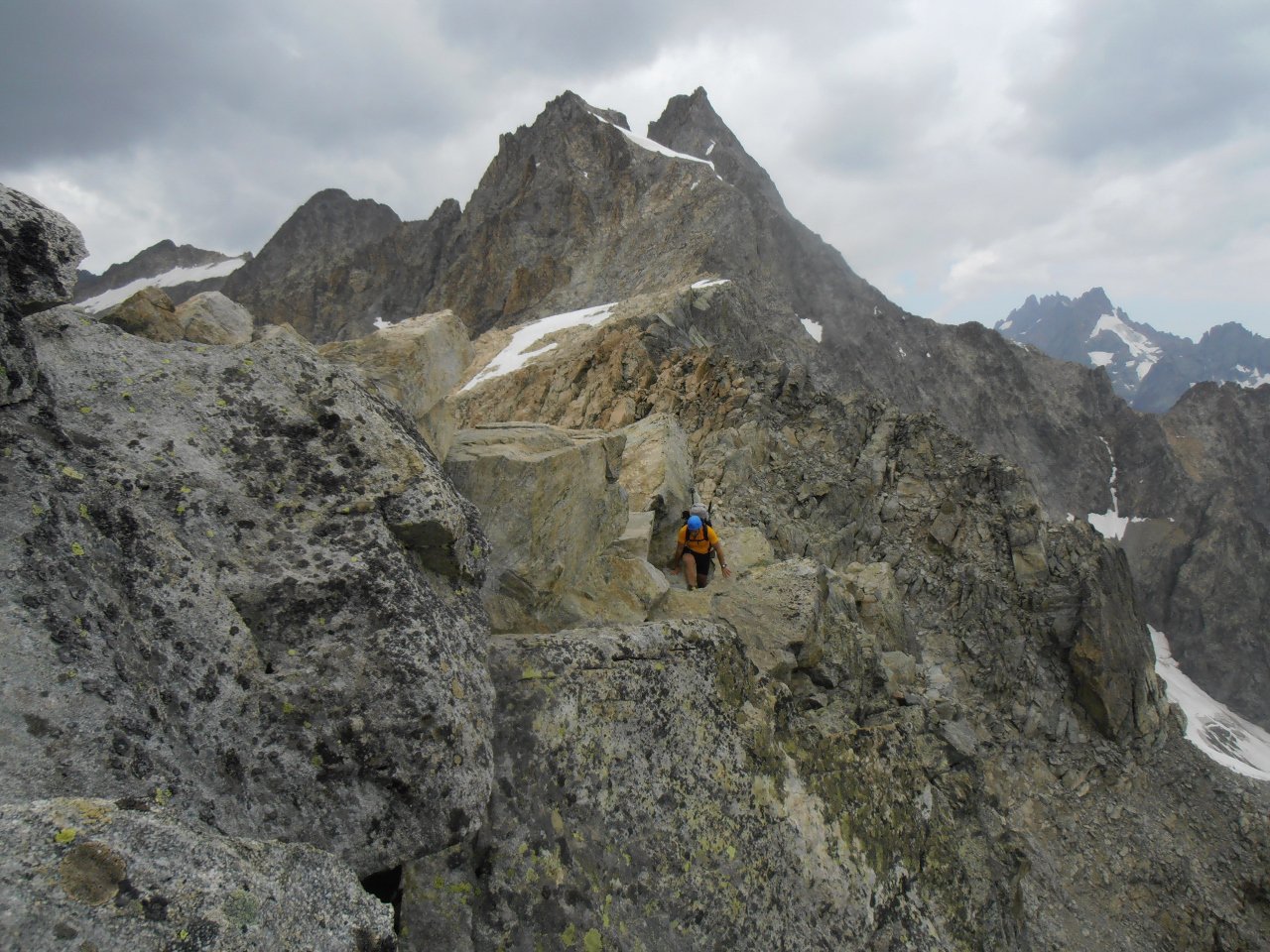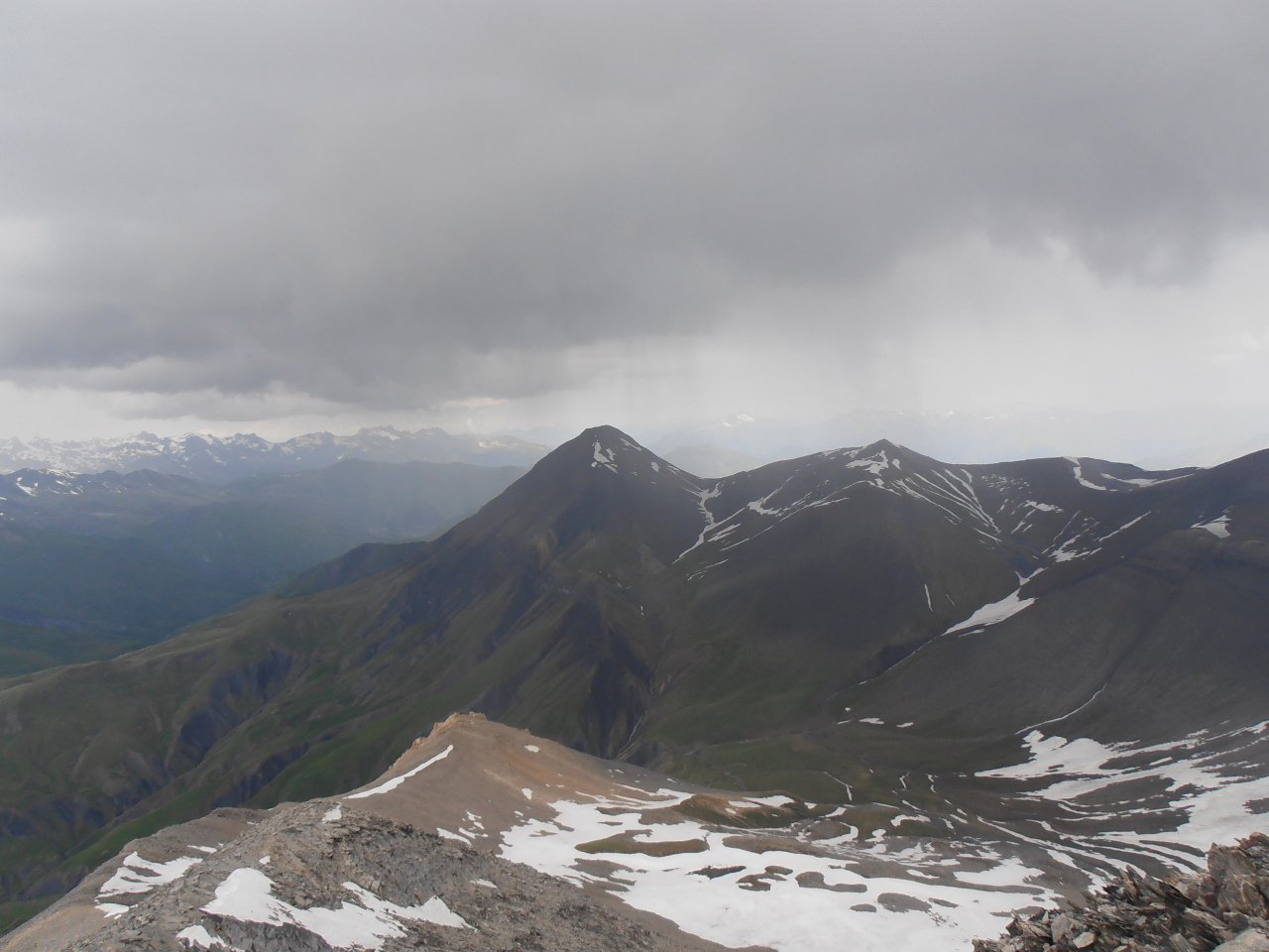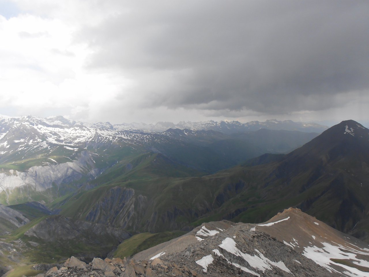 | tini | 01 - Les Aguilles d'Arves dalla cima | tini | 02 - la cresta finale ed il nevaio tra la cima e l'anticima | tini | 03 - Aguilles d'Arves viste dal nevaio in cresta | tini | 04 - al mattino cielo sereno e gran vista sulla Mejie | tini | 05 - c'è un'intera valle da percorrere prima di iniziare la salita vera e propria | tini | 06 - percorsi di salita | tini | 07 - lungo il costone erboso della salita diretta in cresta | tini | 08 - fiorniture spettacolari | tini | 09 - appaiono les Aguilles d'Arves salendo | tini | 10 - fine del costone erboso, la cresta diventa detritica verso i 2700mt | tini | 11 - panorama salendo, la Muzelle | tini | 12 - panorama salendo, l'intero gruppo della Mejie | tini | 13 - panorama salendo, Pic du Lac Blanc, Pic Bayle, Pic de l'Etendard | tini | 14 - la cresta diventa detritica sotto l'anticima | tini | 15 - quasi sulll'anticima | tini | 16 - dall'anticima verso la cima, con l nevaio | tini | 17 - Aguilles d'Arves dal nevaio | tini | 18 - inizio del temporale in cima | tini | 19 - ci sono quasi dentro al temporale... scappa scappa... | tini | 20 - la Baraque de la Buffe è il primo punto di riparo, 1000mt sotto la cima... | tini | 21 - sguardo indietro al ritorno, acqua a catinelle
