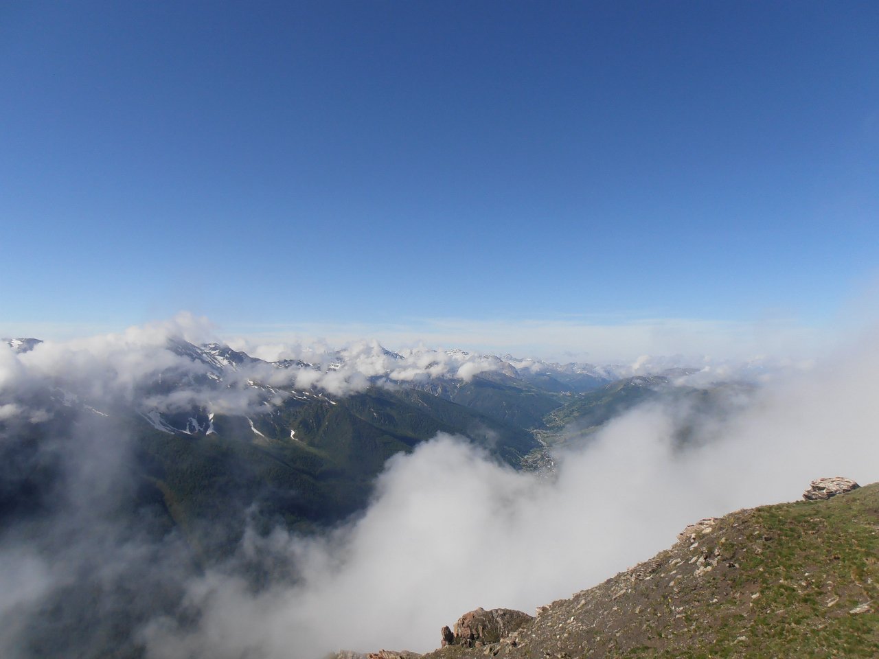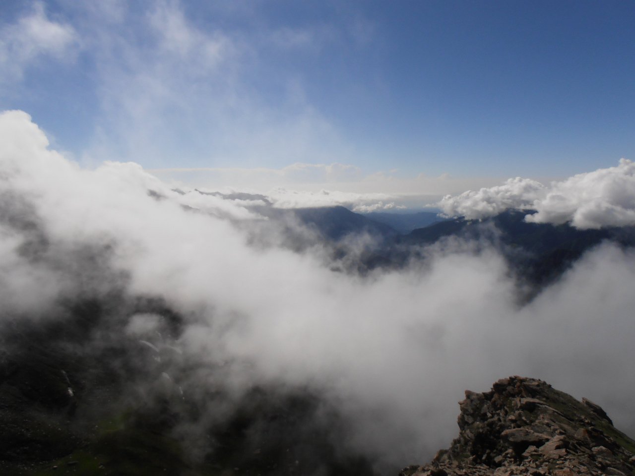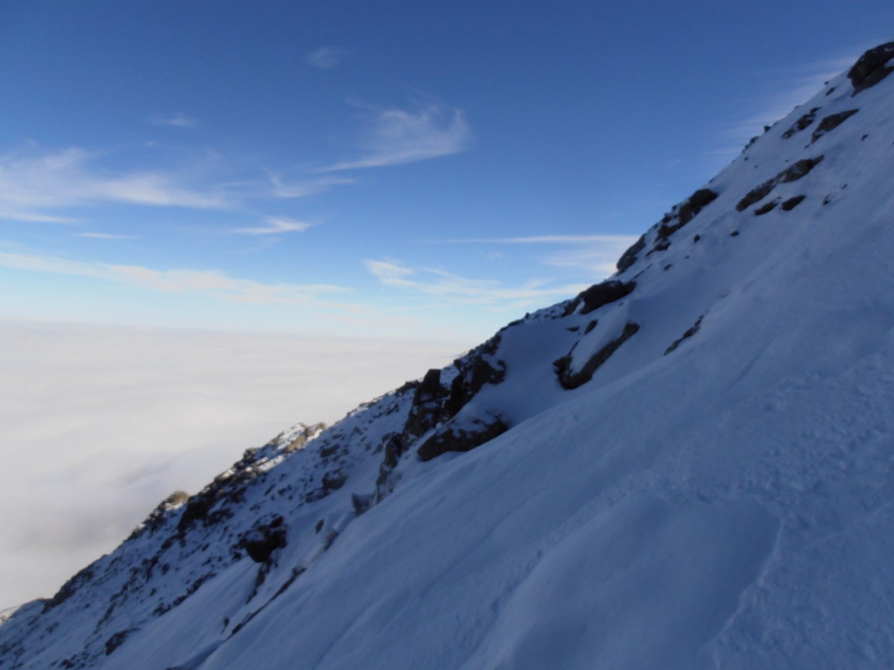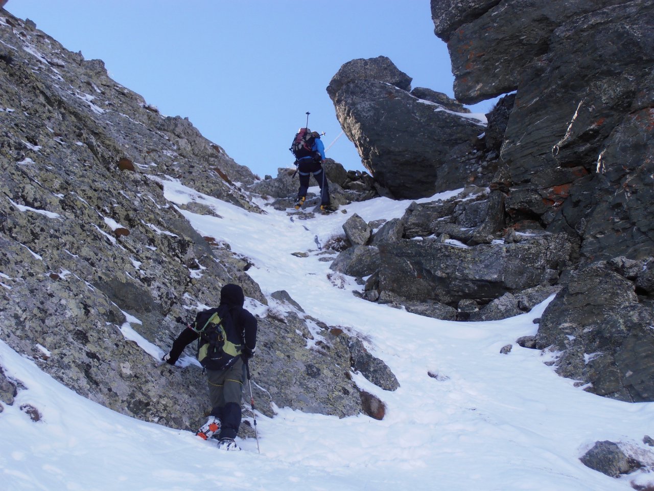 | tini | 02 - il canale visto dal pianoro sottostante | tini | 03 - il passaggio chiave dell'uscita in cresta | tini | 04 - il pianoro roccioso del Mait di Plenc è formato da grossi blocchi (meglio aggirarli) | tini | 05 - circa a metà canale | tini | 06 - pendenza nel canale | tini | 07 - il passaggio dell'uscita in cresta, 40 gradi e qualche balza rocciosa | tini | 08 - la cima con vista sul Monviso e Granero | tini | 09 - cima | tini | 10 - cima | tini | 11 - mare di nuvole | tini | 12 - la cresta in discesa | tini | 13 - lungo la cresta in discesa | tini | 14 - si rientra sotto le nuvole | tini | 01 - sulla cima nord con il Grand Roc alle spalle | tini | 02 - Teddy sulla cima sud