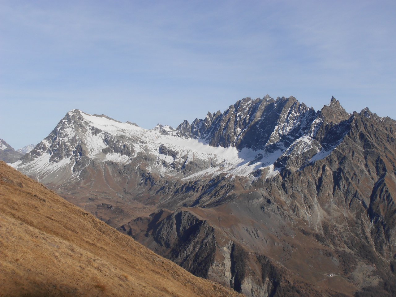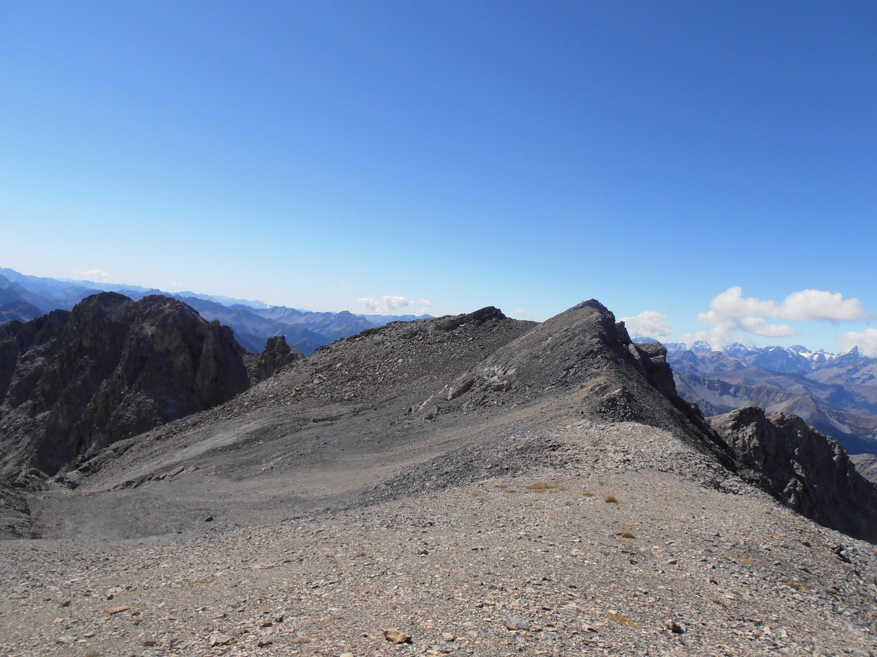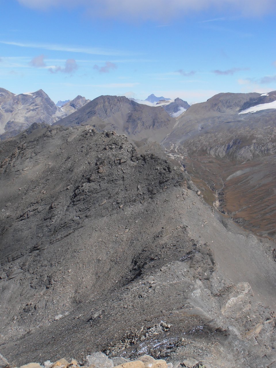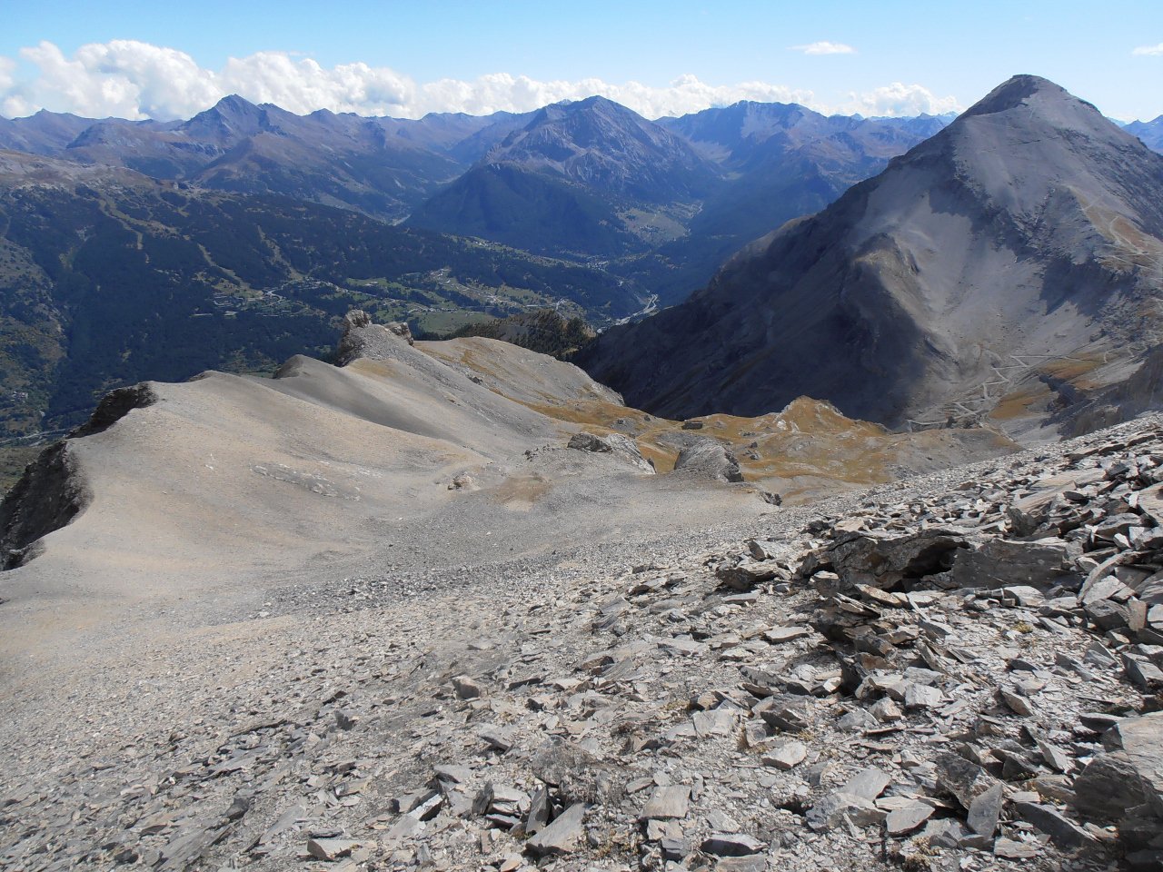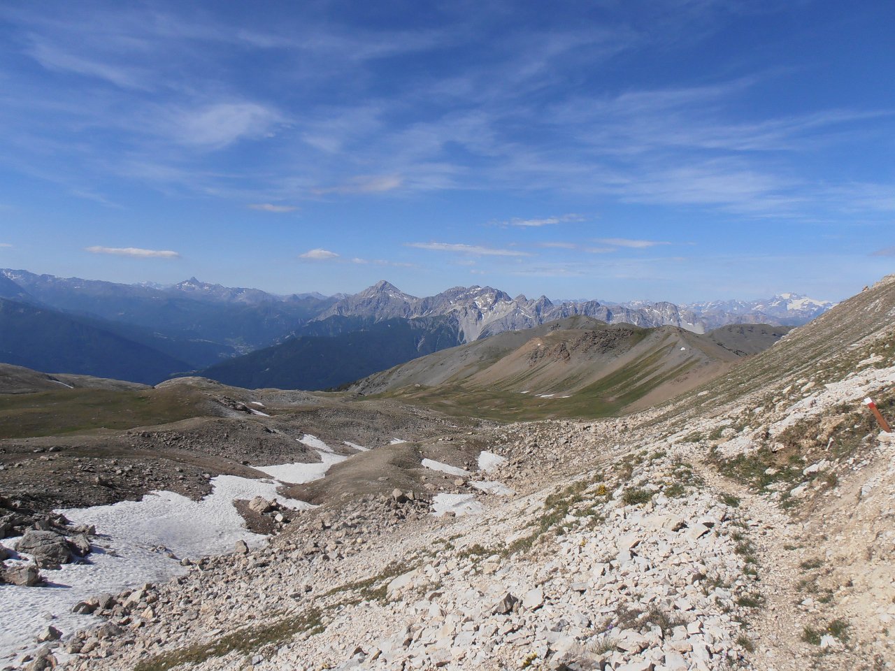 | tini | 07 - dalla cima verso l'alta Val Chisone | tini | 01 - Les Aguilles d'Arves dalla cima | tini | 02 - la cresta finale ed il nevaio tra la cima e l'anticima | tini | 03 - Aguilles d'Arves viste dal nevaio in cresta | tini | 04 - al mattino cielo sereno e gran vista sulla Mejie | tini | 05 - c'è un'intera valle da percorrere prima di iniziare la salita vera e propria | tini | 06 - percorsi di salita | tini | 07 - lungo il costone erboso della salita diretta in cresta | tini | 08 - fiorniture spettacolari | tini | 09 - appaiono les Aguilles d'Arves salendo | tini | 10 - fine del costone erboso, la cresta diventa detritica verso i 2700mt | tini | 11 - panorama salendo, la Muzelle | tini | 12 - panorama salendo, l'intero gruppo della Mejie | tini | 13 - panorama salendo, Pic du Lac Blanc, Pic Bayle, Pic de l'Etendard | tini | 14 - la cresta diventa detritica sotto l'anticima